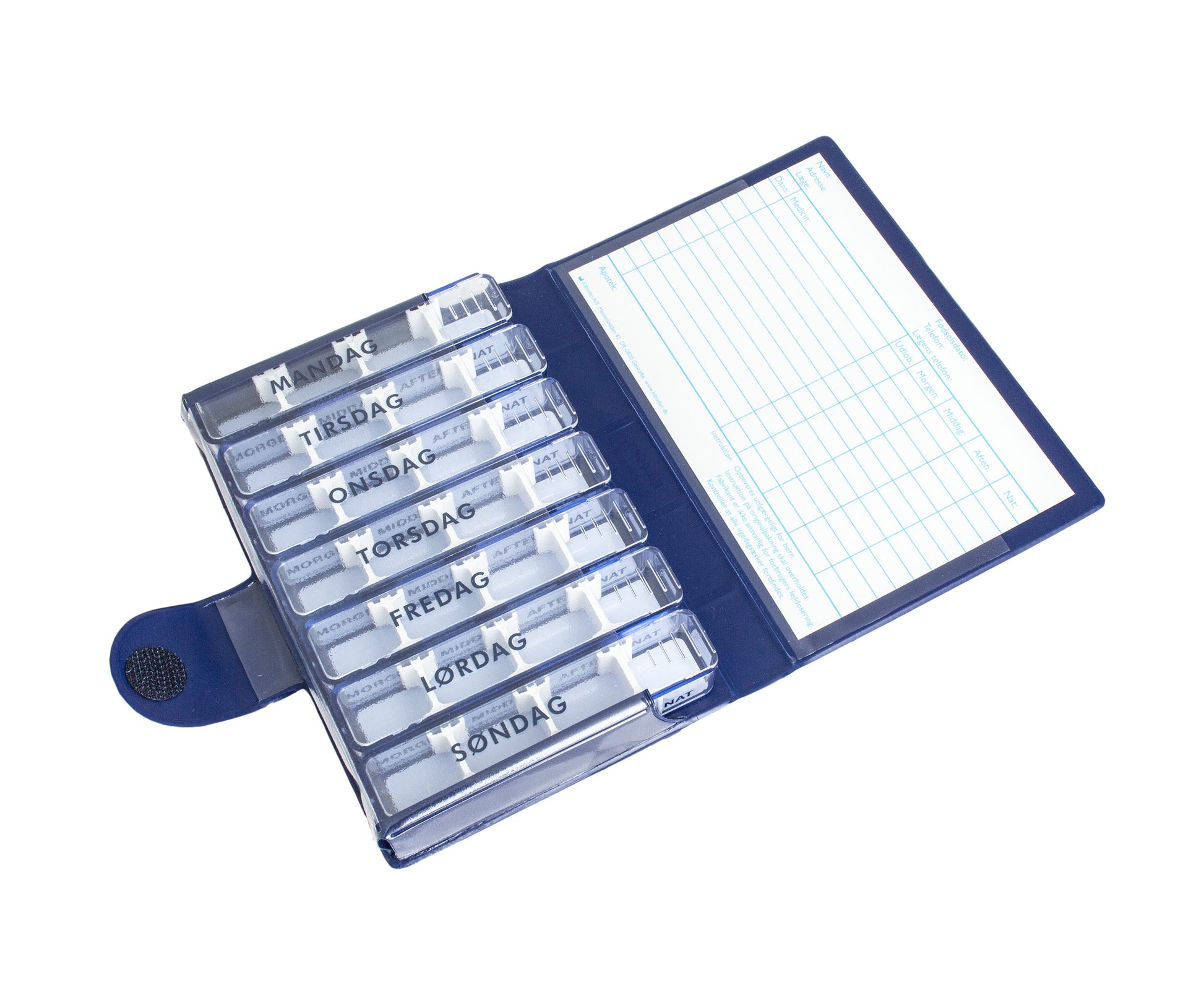 Ugedoseringsæsken kan vaskes i opvaskemaskinen eller afsprittes.