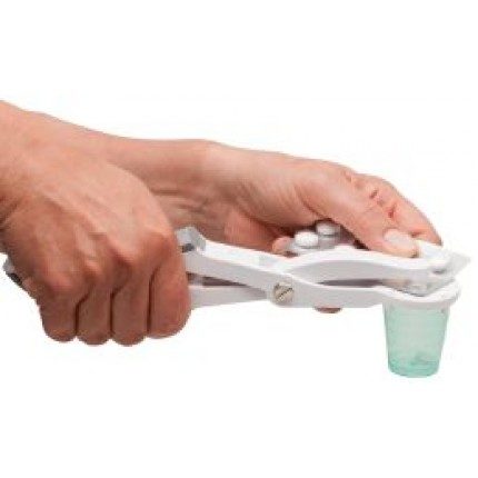 Pillout, en ergonomisk tang til nemt og skånsomt, at trykke tabletter ud af blisterpakninger.