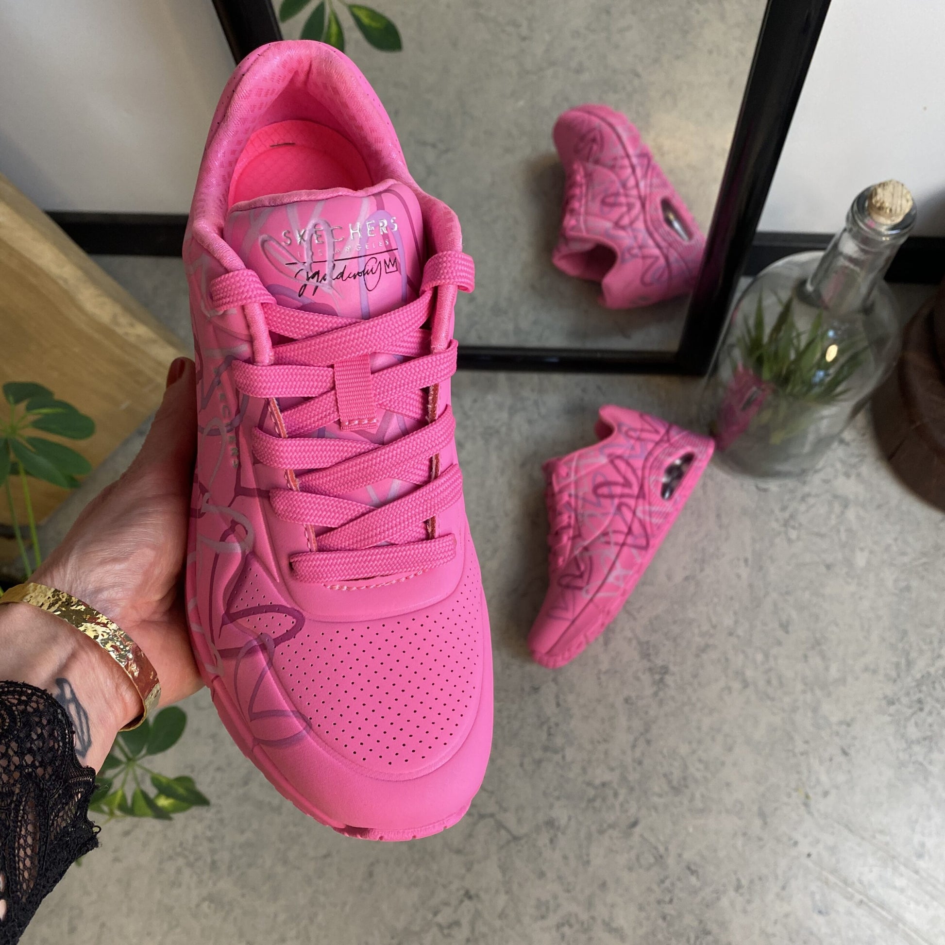Kunstneren James Goldcrown har med sine Lovewall-hjerter sammen med Skechers skabt disse unikke sko.