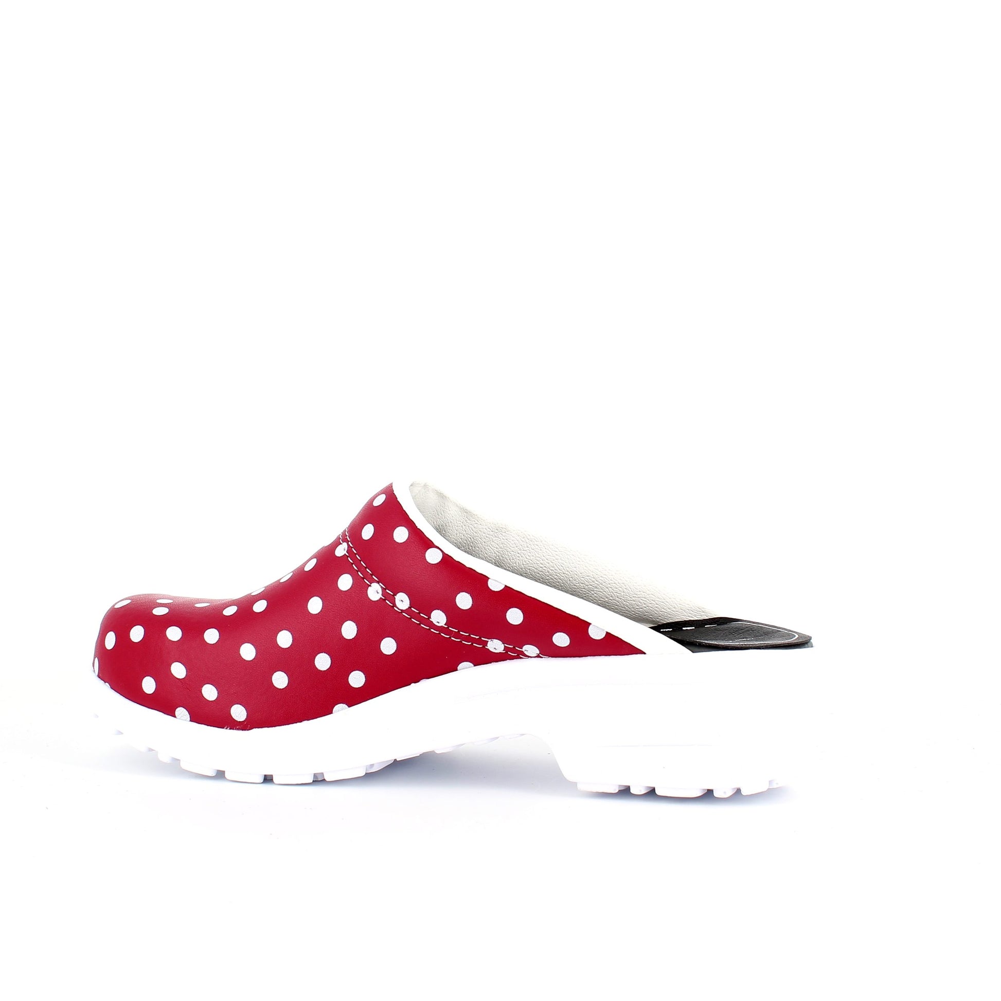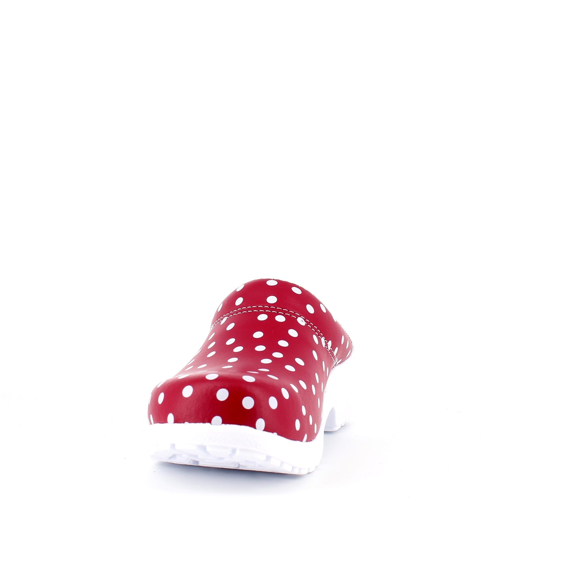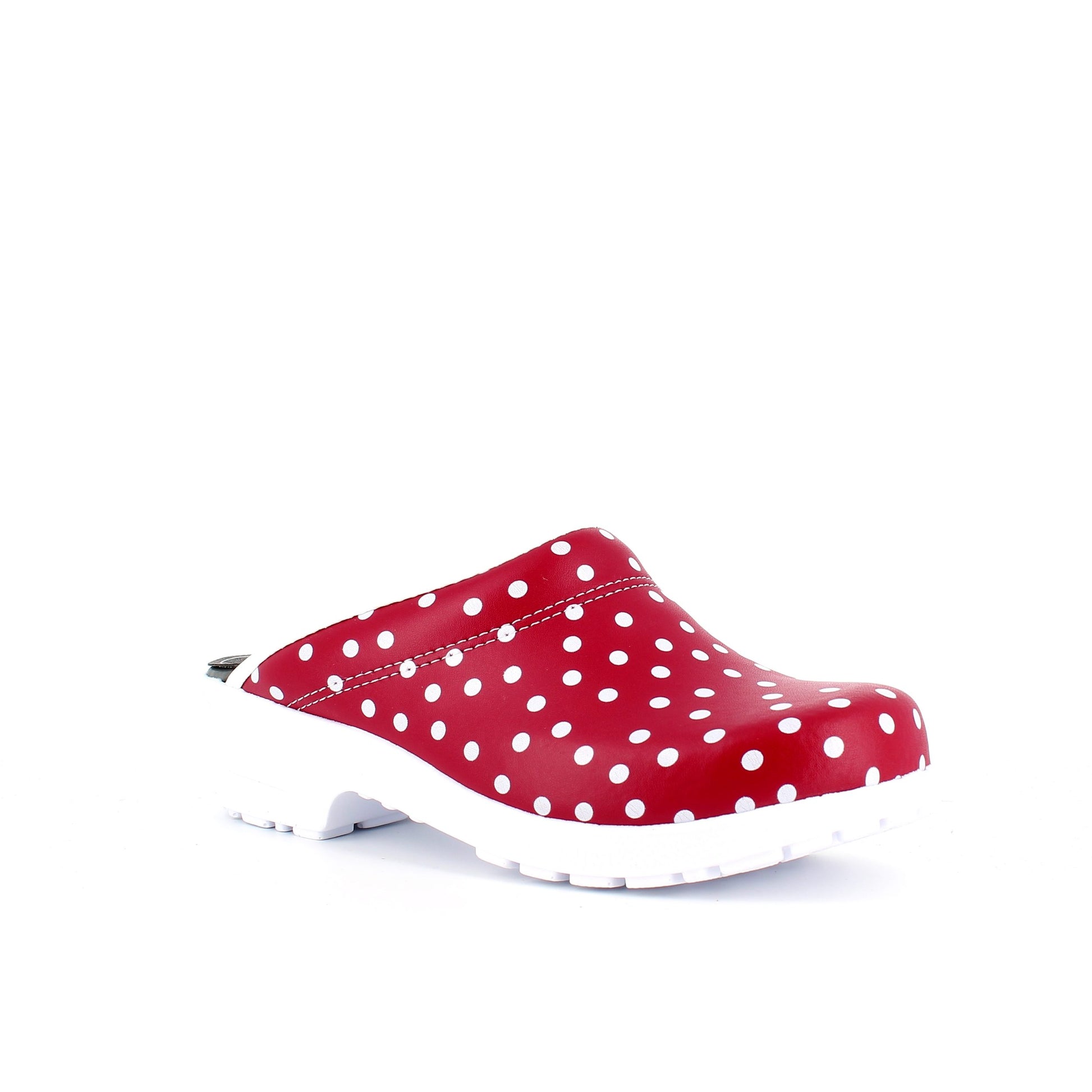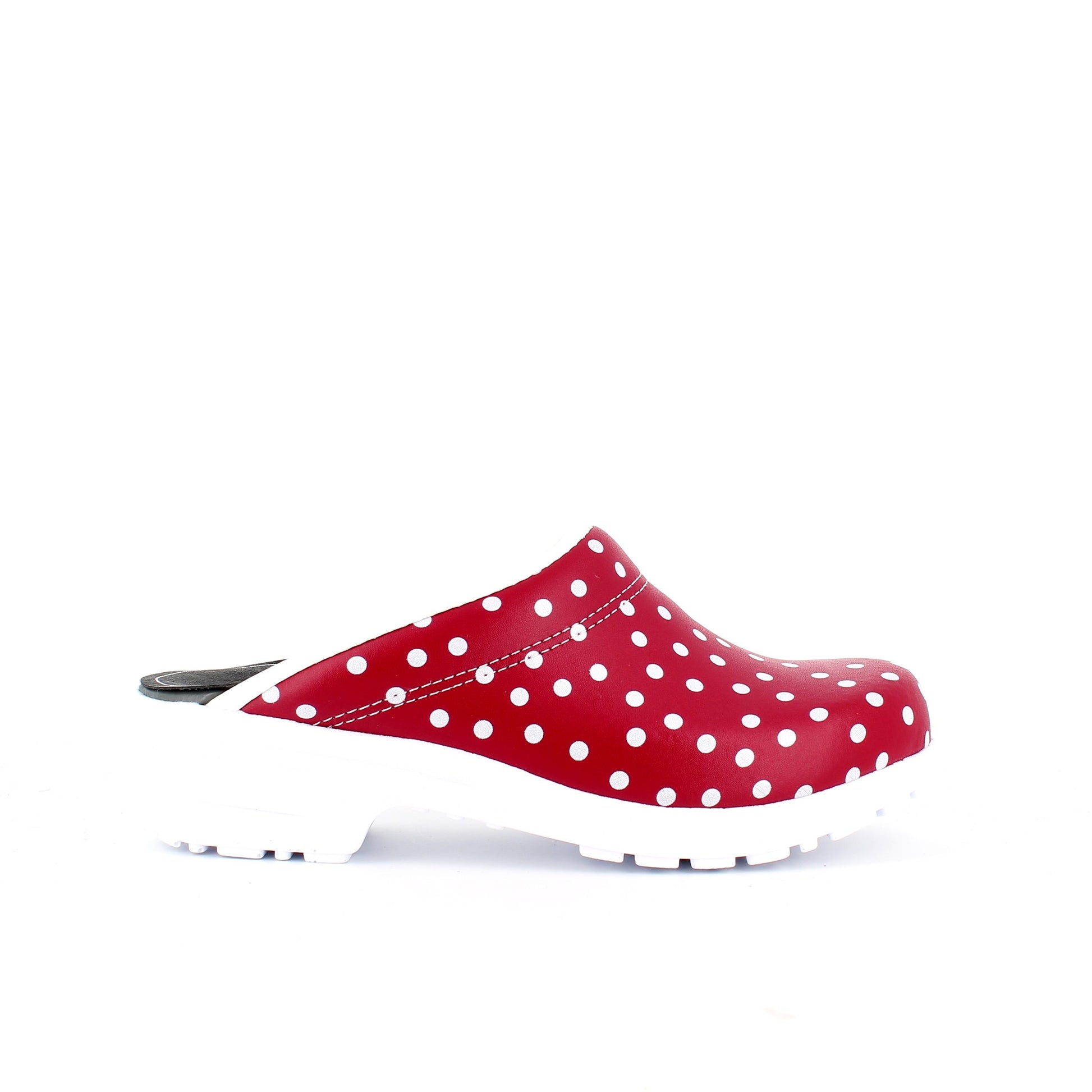 Rød træsko med polkaprikker uden kap