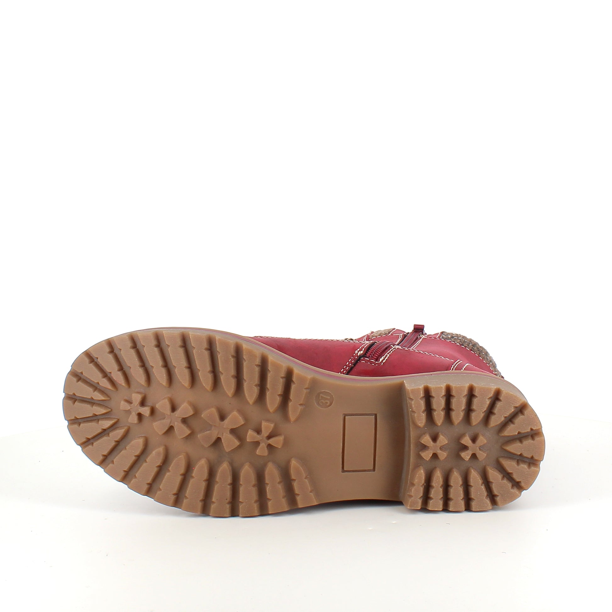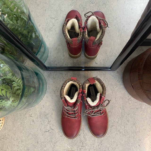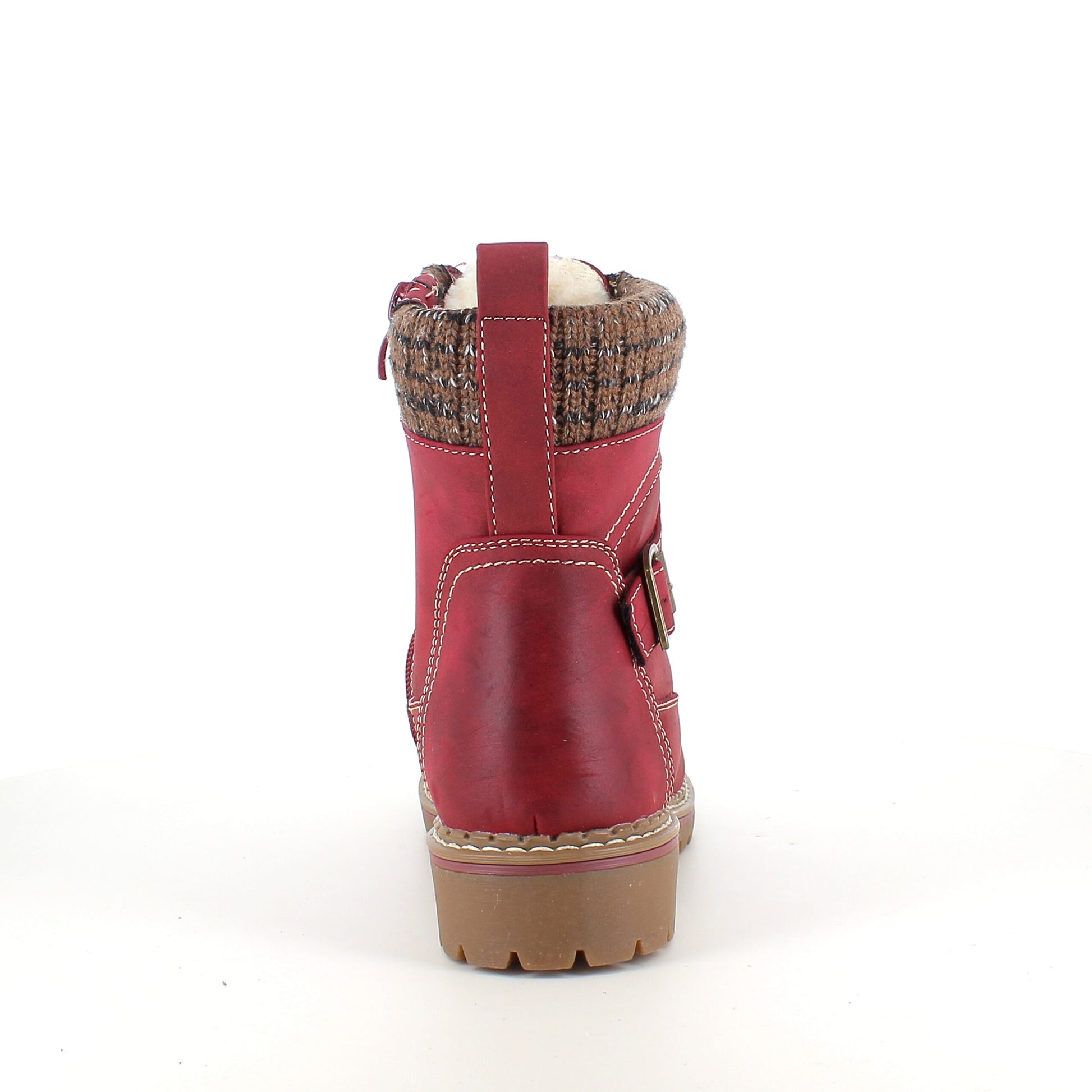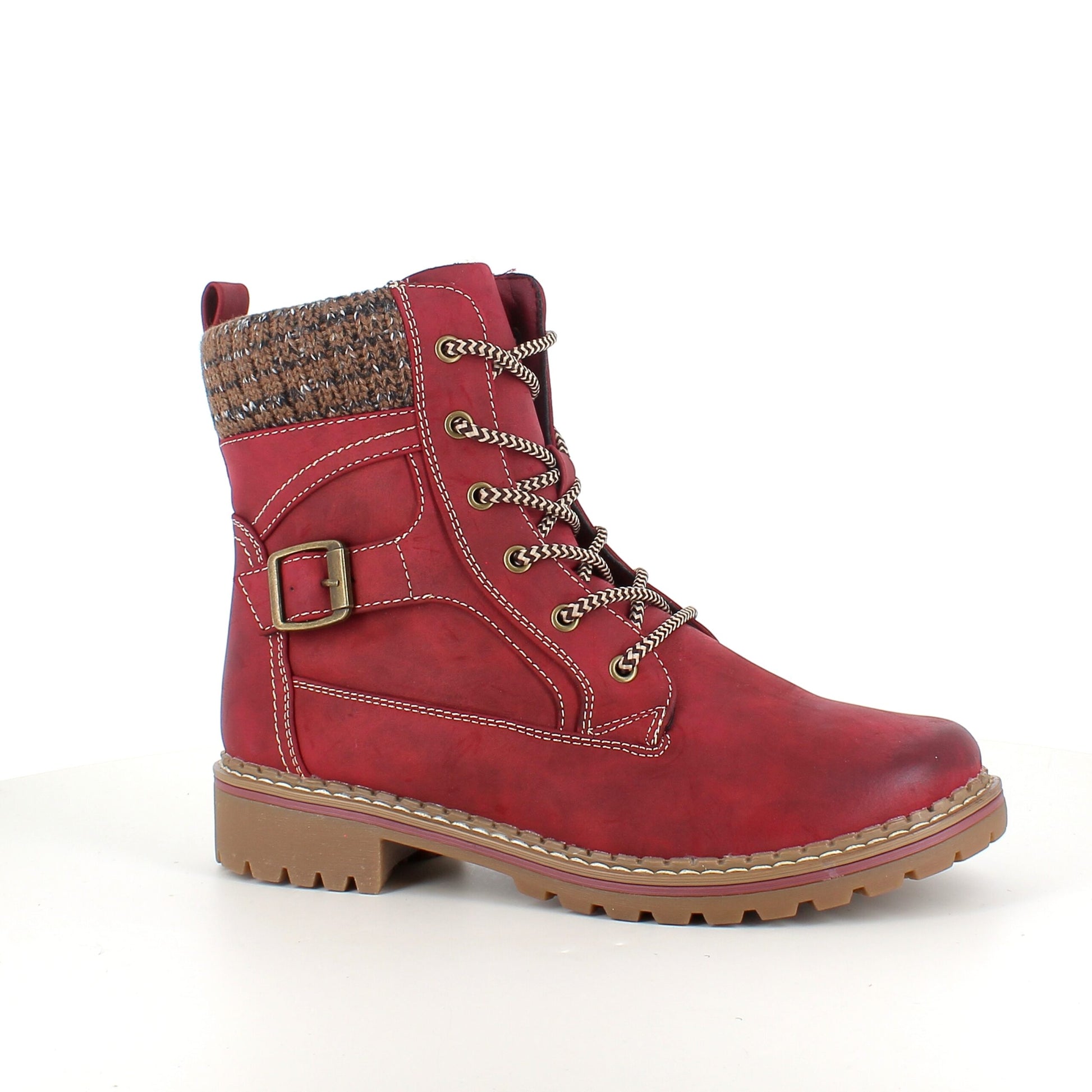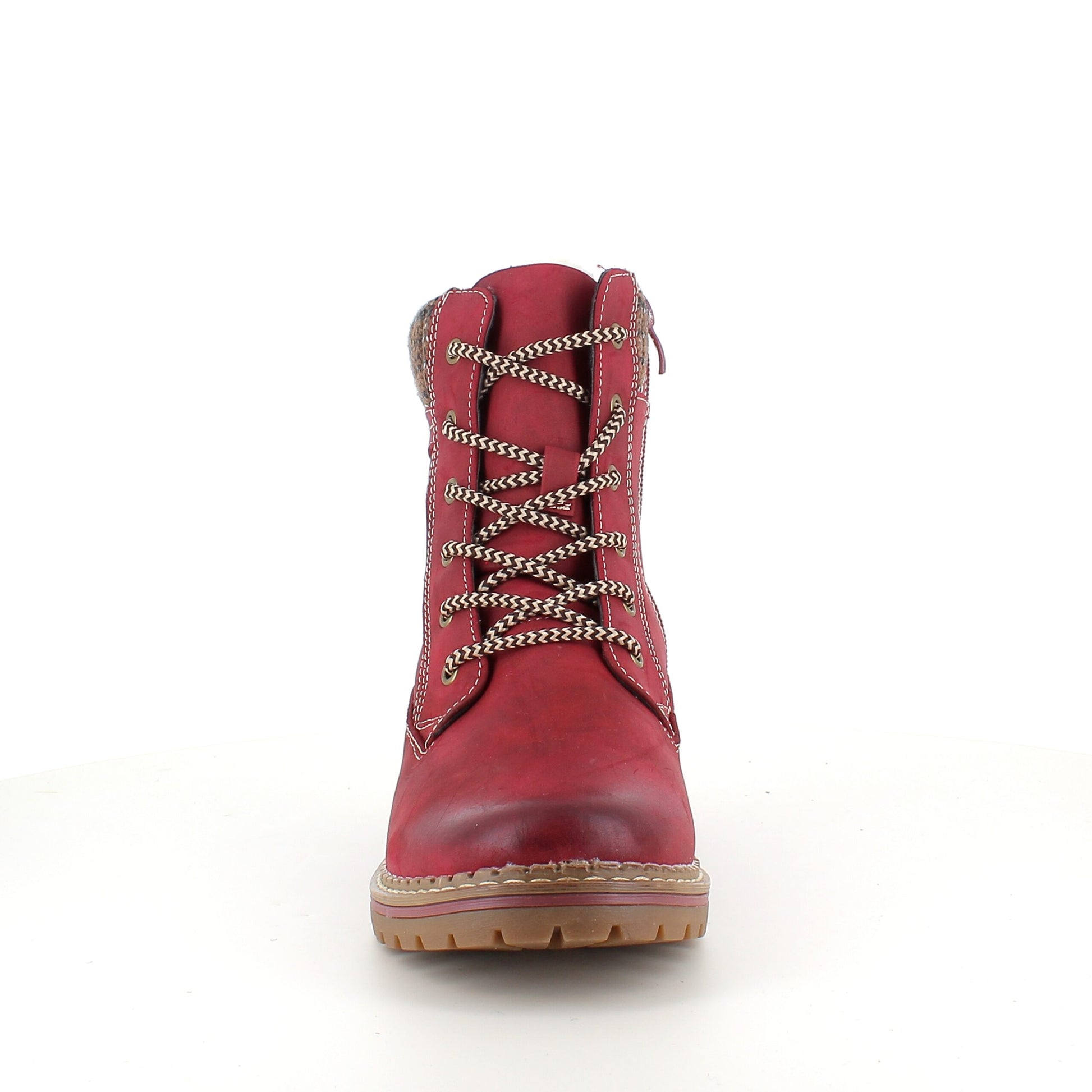 Rød damestøvle med snørebånd, lynlås og varmt for – dekorativ spænde og TPR-sål