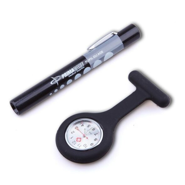 Pakkesæt med sygepleje silikoneur og penlygte i samme farve.