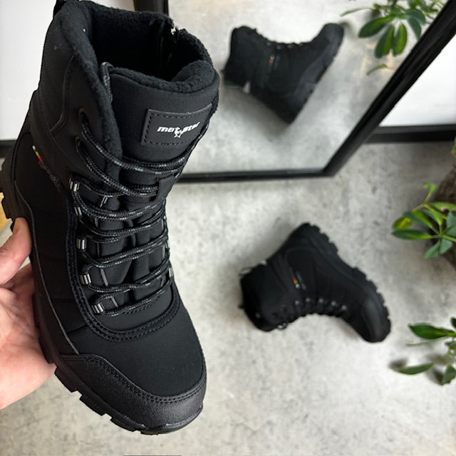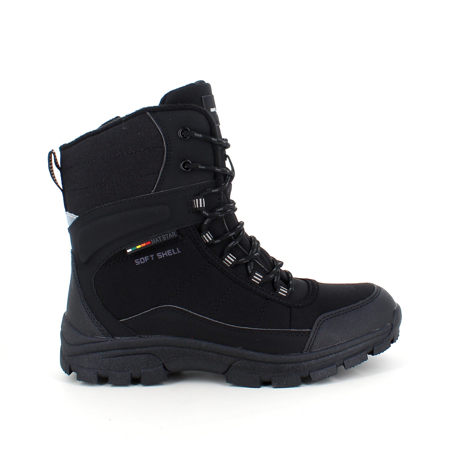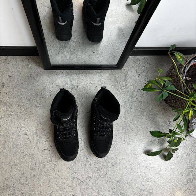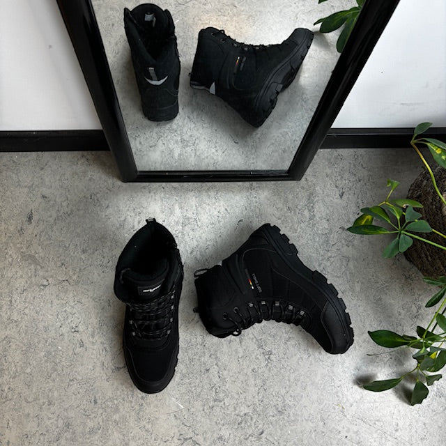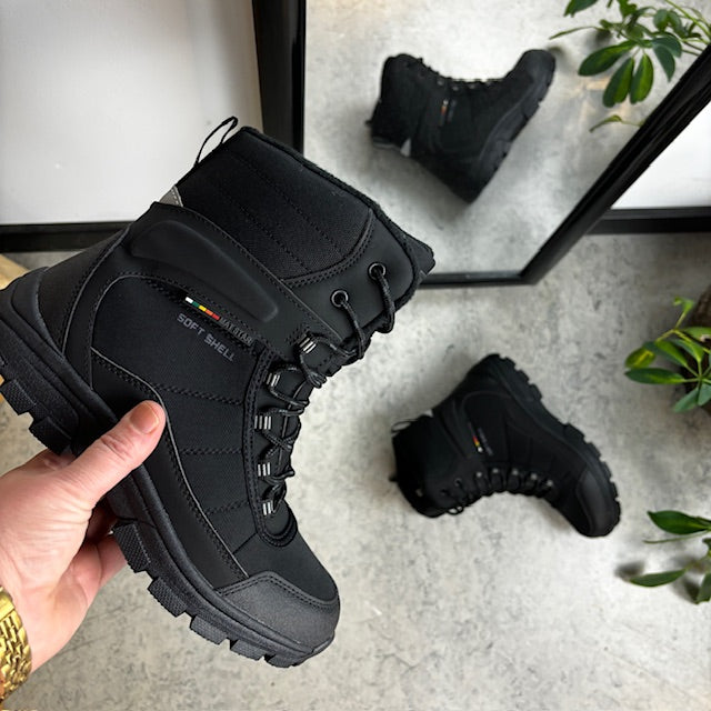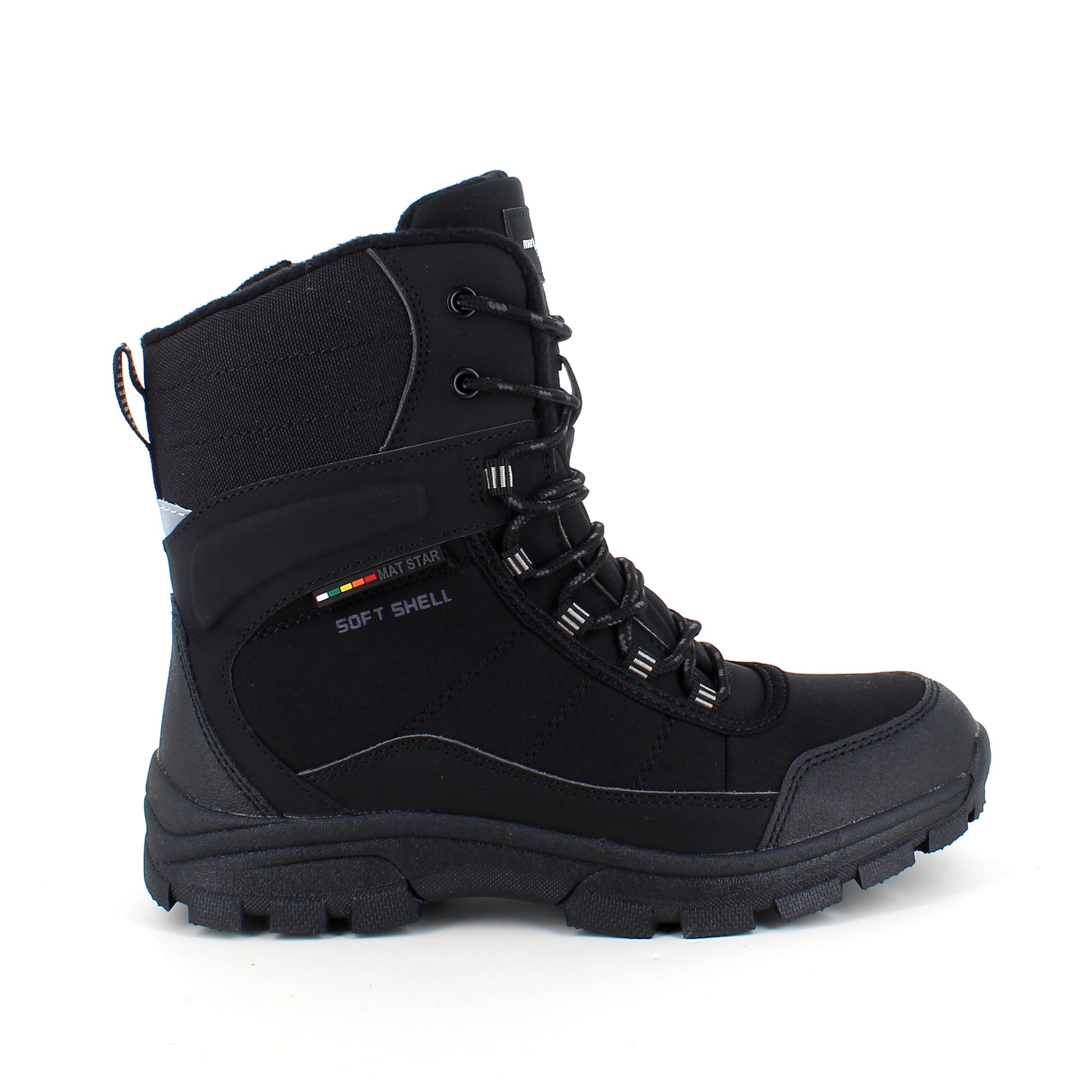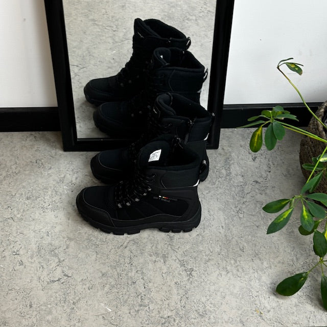 Softshell vinterstøvle til kvinder og mænd med en sort overdel og forstærkninger på snuden og hælen.