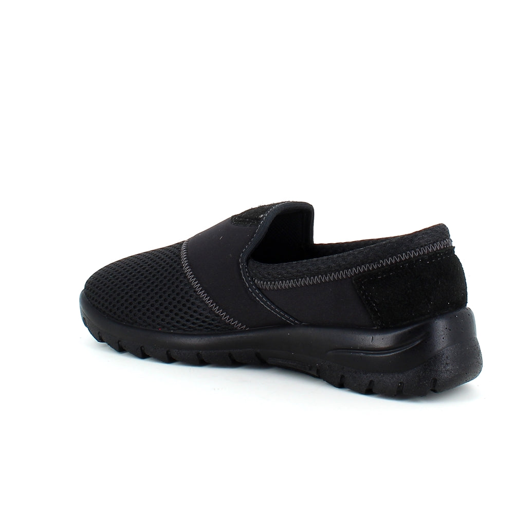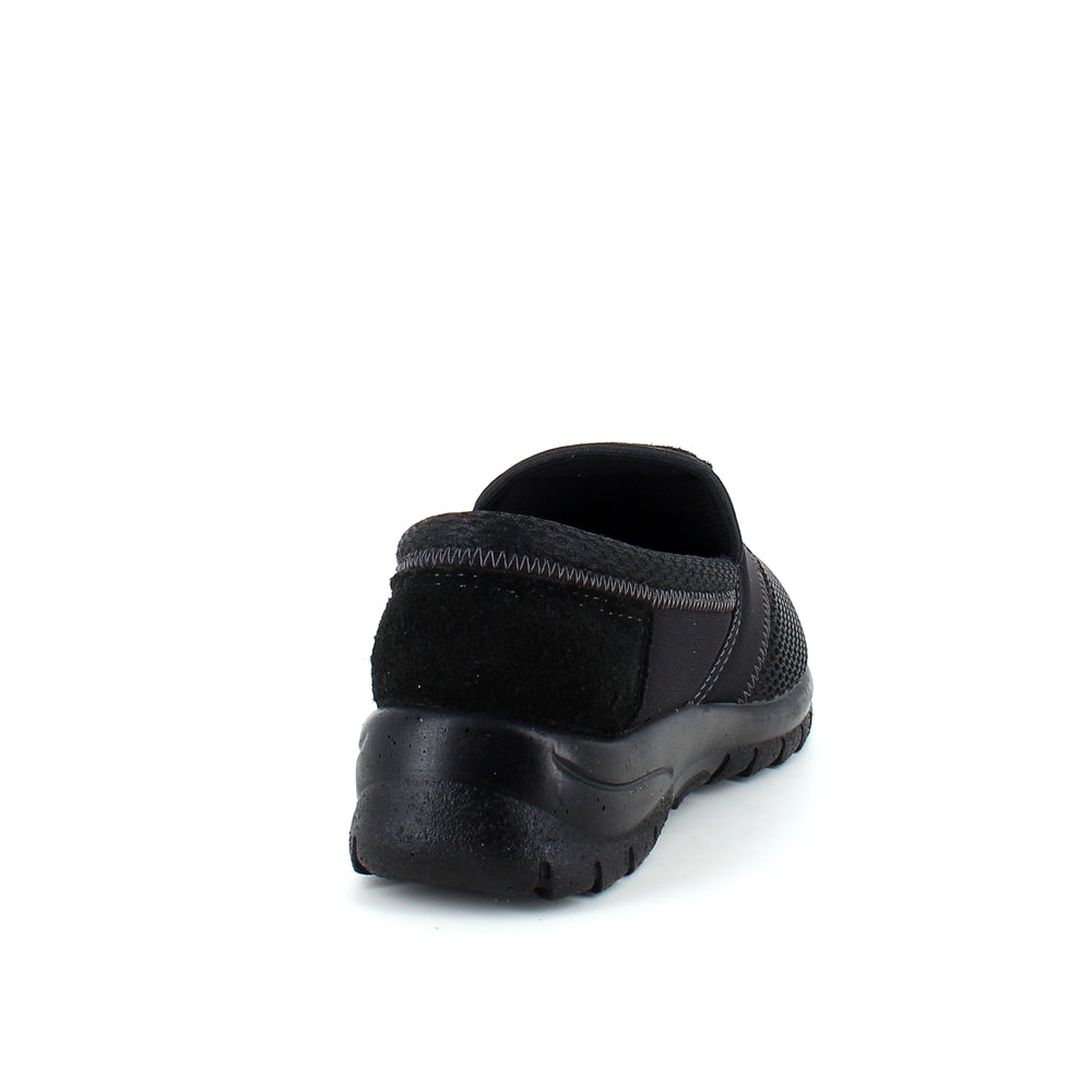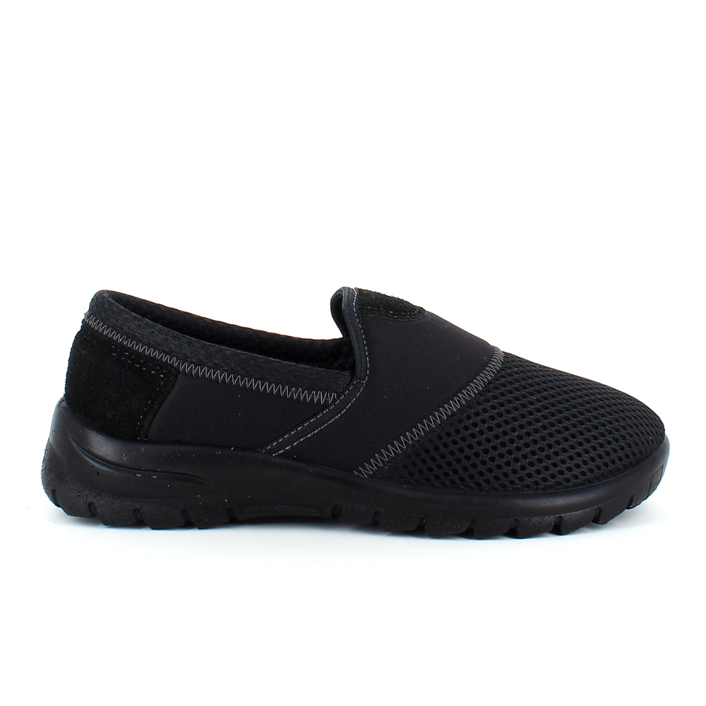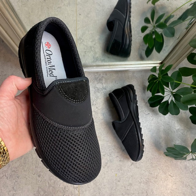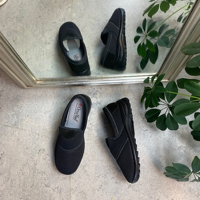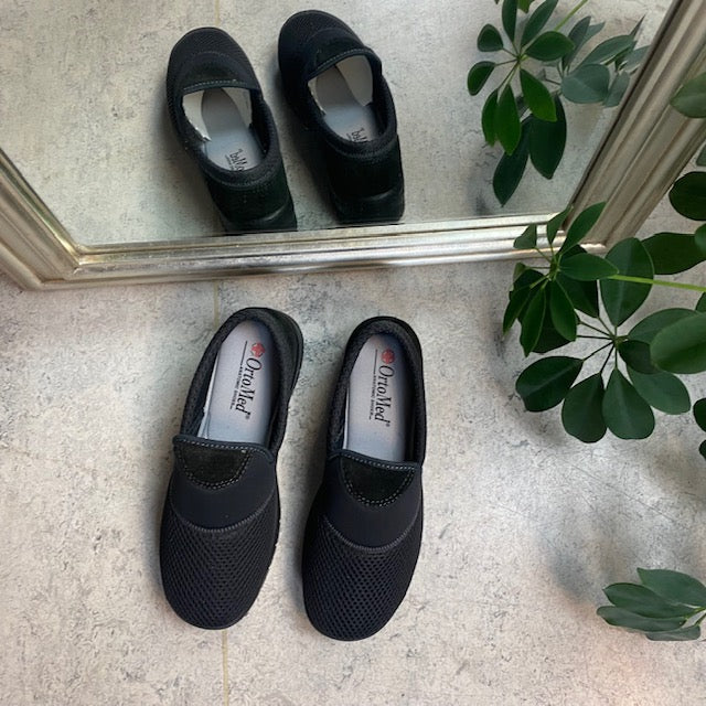 Sko i sort med skind detaljer og en meget bred pasform.