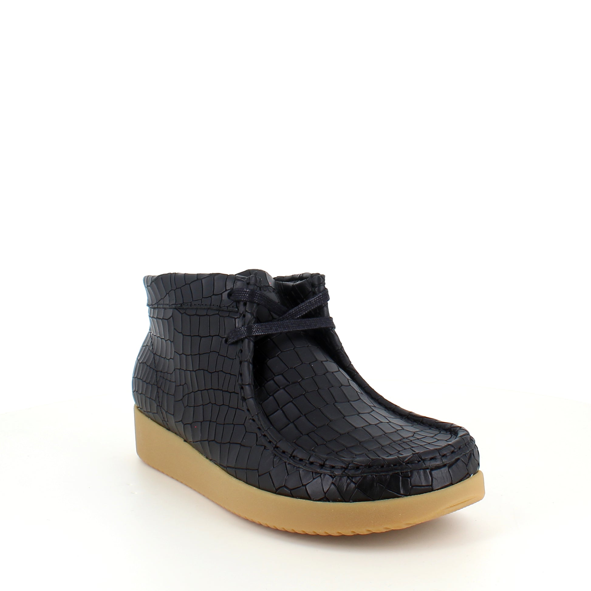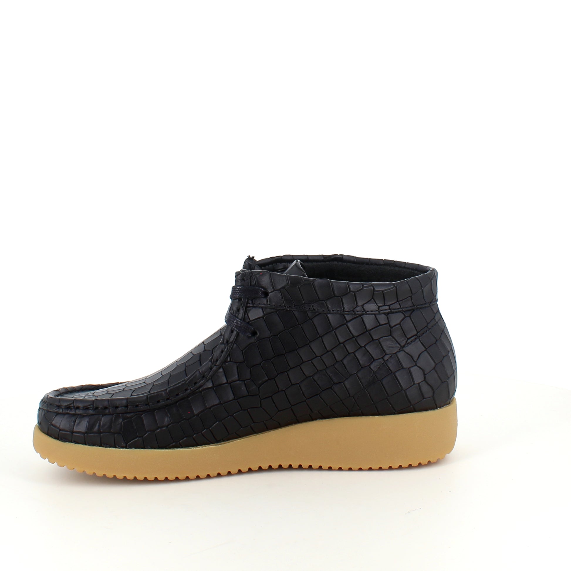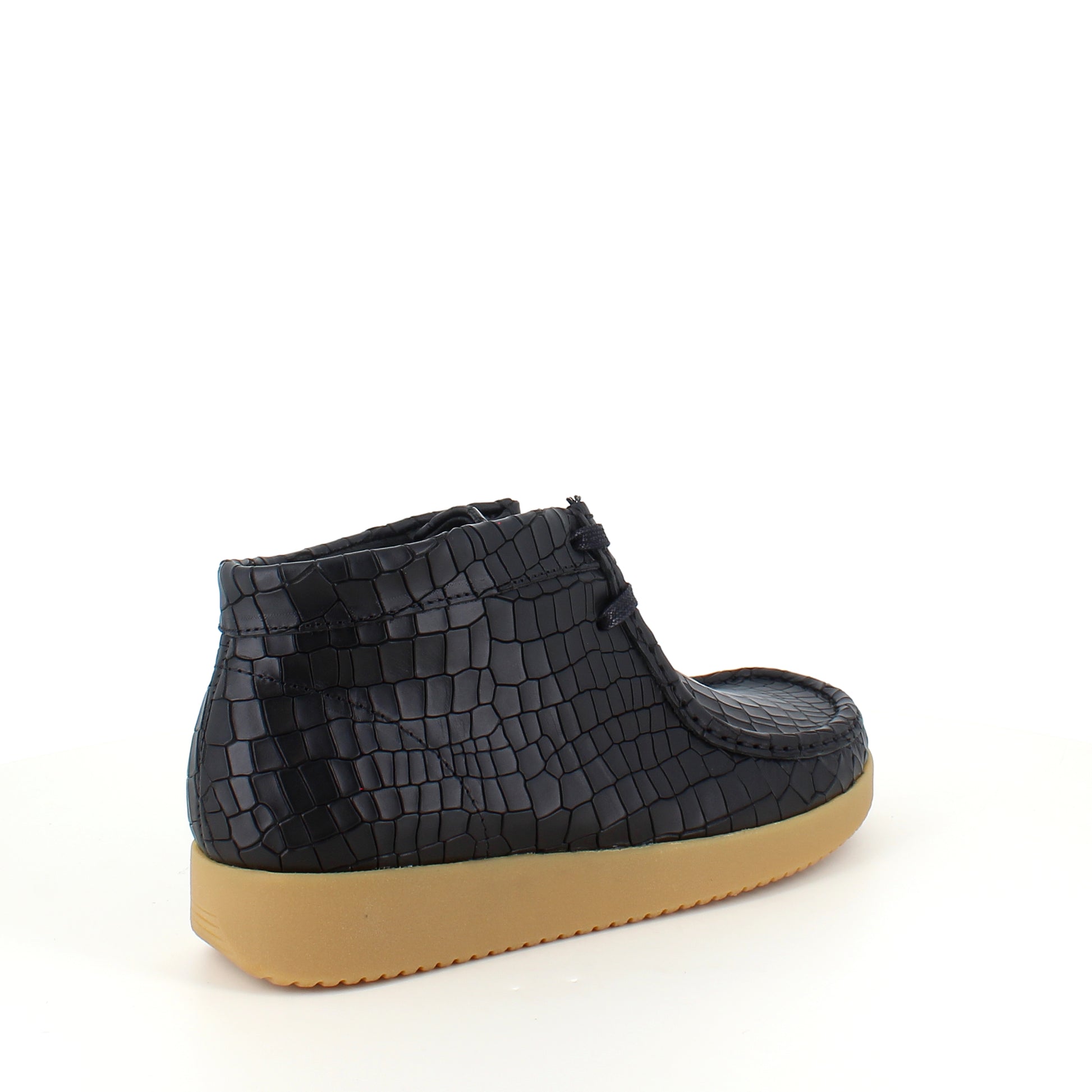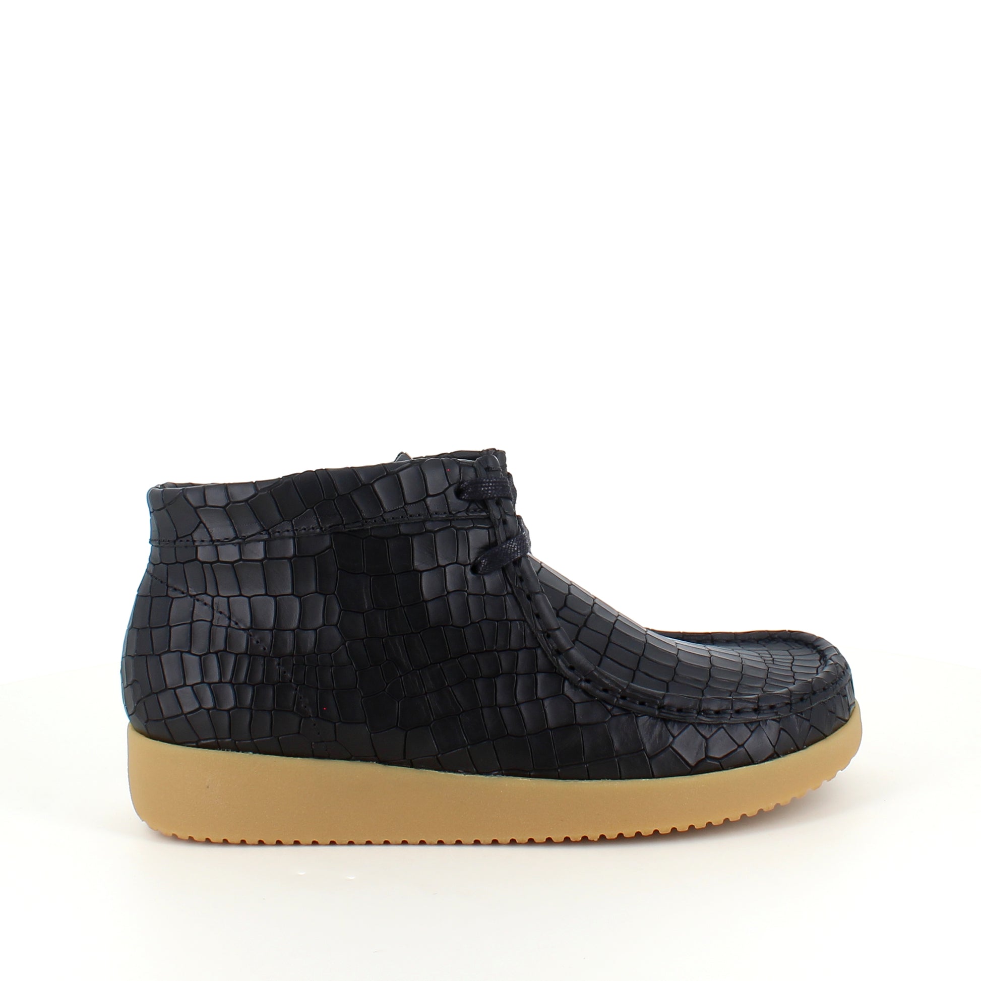 Sort krokodillemønstret støvlet fra Nature er en moderne og ergonomisk sko lavet af læder.