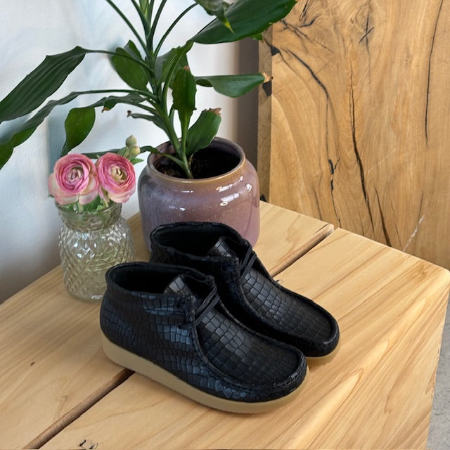 Sort krokodillemønstret støvlet i skind fra Nature