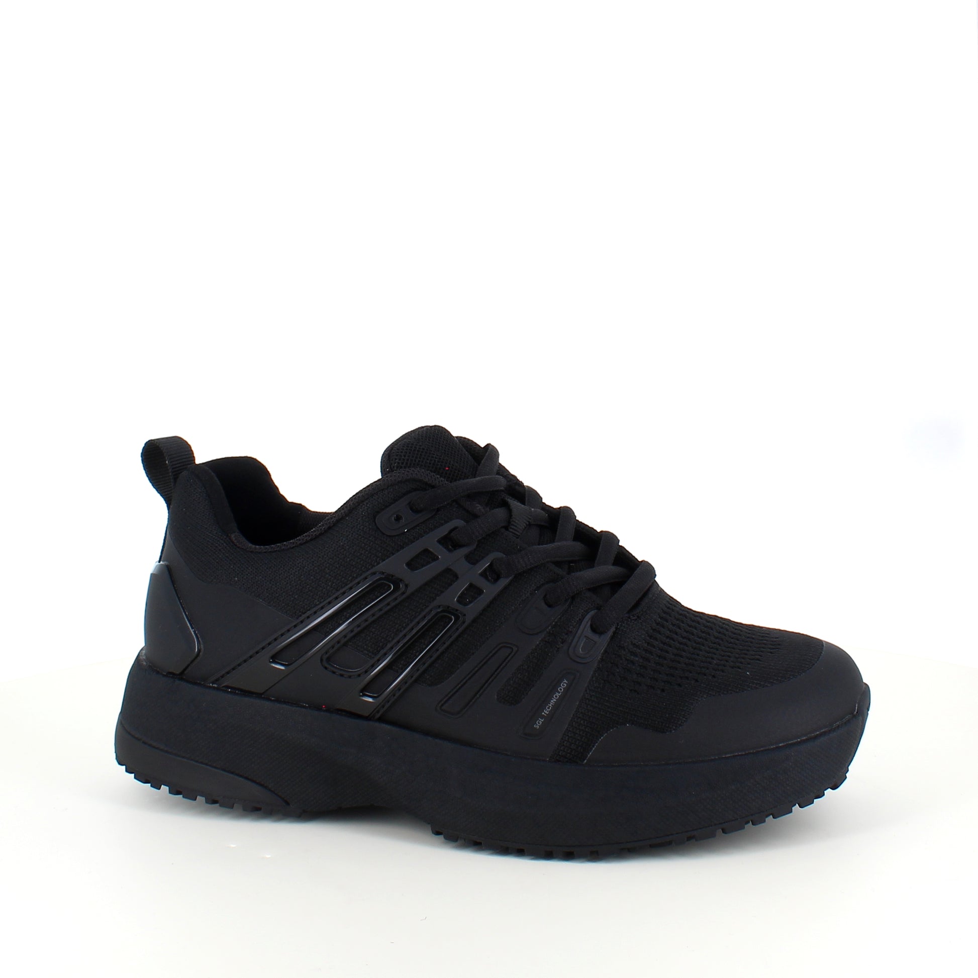 Denne sorte sko fra Gaitline har en sømløs, elastisk overdel, der tilpasser sig fodens ændringer, hvilket sikrer en letvægtsoplevelse med god åndbarhed.