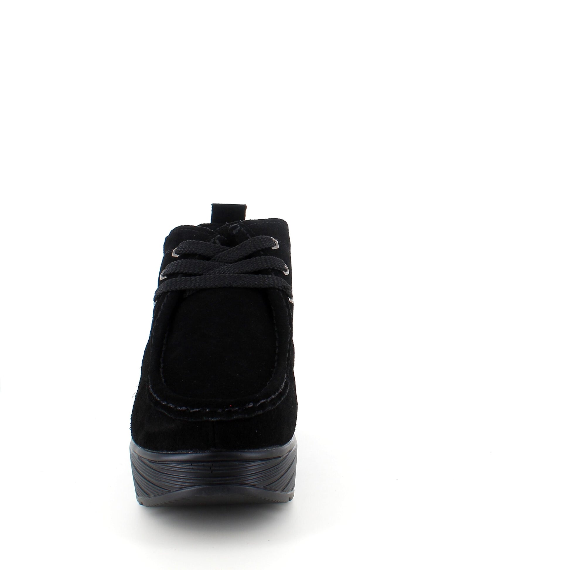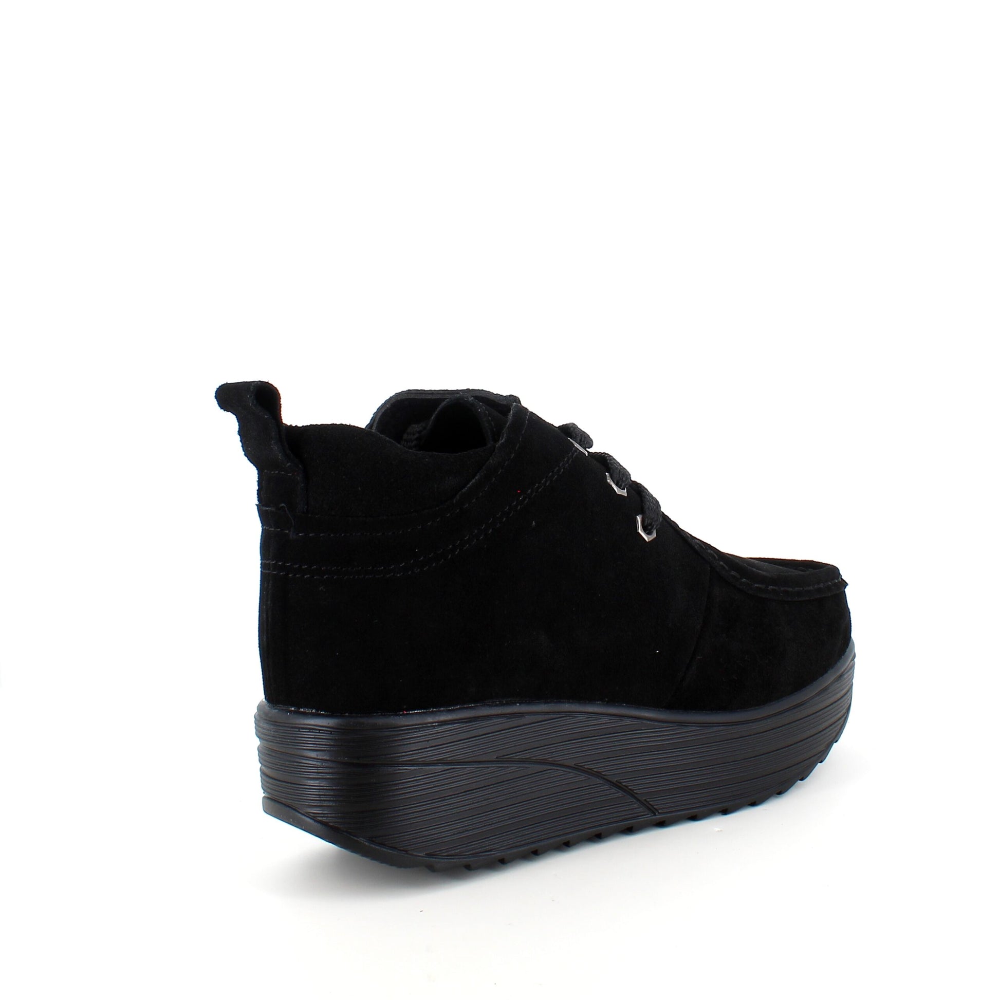 Skoene har snørelukning og en synlig stikning på fronten, og de måler 7 cm fra sålen til åbningen ved hælen. Der er ekstra foring ved hælen, samt en blød tekstilforing indvendigt. Indersålen er designet med god svangstøtte, og mellemsålen er en gængesål, som sikrer komfort, især for dem med hæl- og forfodsproblemer. Ydersålen har et let mønster og skoene fås i størrelserne 37-42