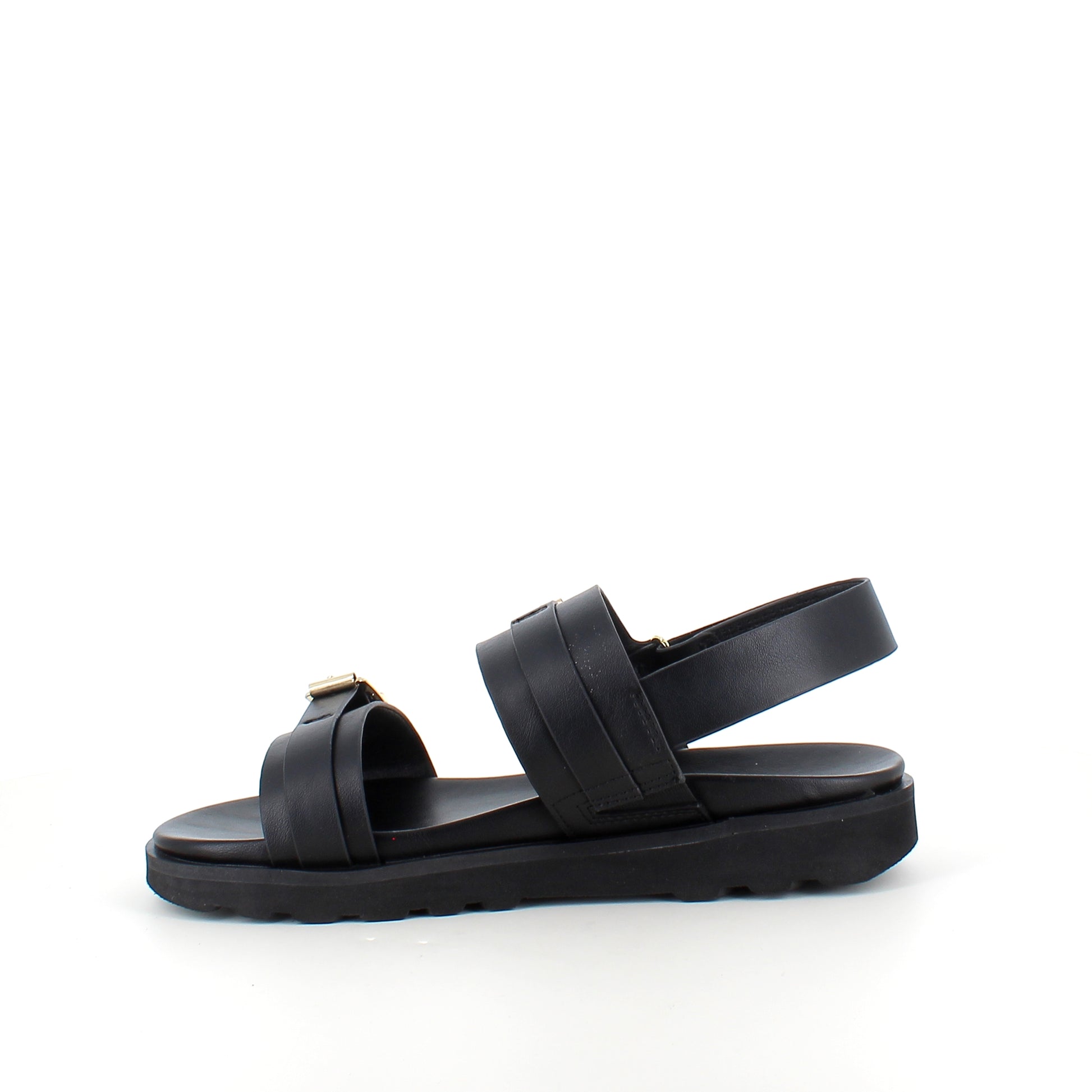 Du ved, hvor godt det fungerer med en sandal, der passer til næsten alt. Den sorte model har et stilrent udtryk med brede remme & dekorative spænder i metal, som giver et klassisk & elegant look. En sandal der nemt kan bruges til både hverdag, ferie & sommerens arrangementer.