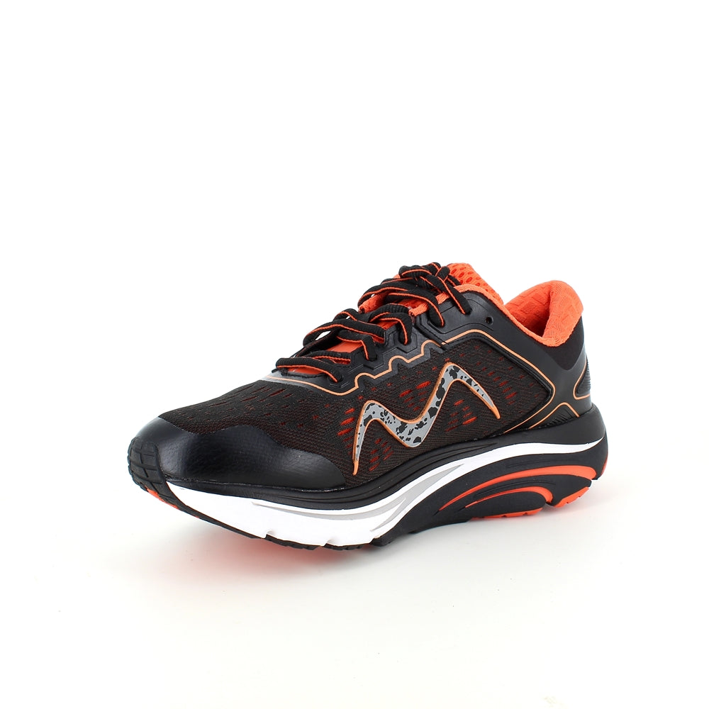 Den sorte MBT sko har den kendte sålkonstruktion som sammen med ekstra stødabsorbering og stivere forfod giver dig den bedste stødabsorbering