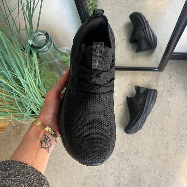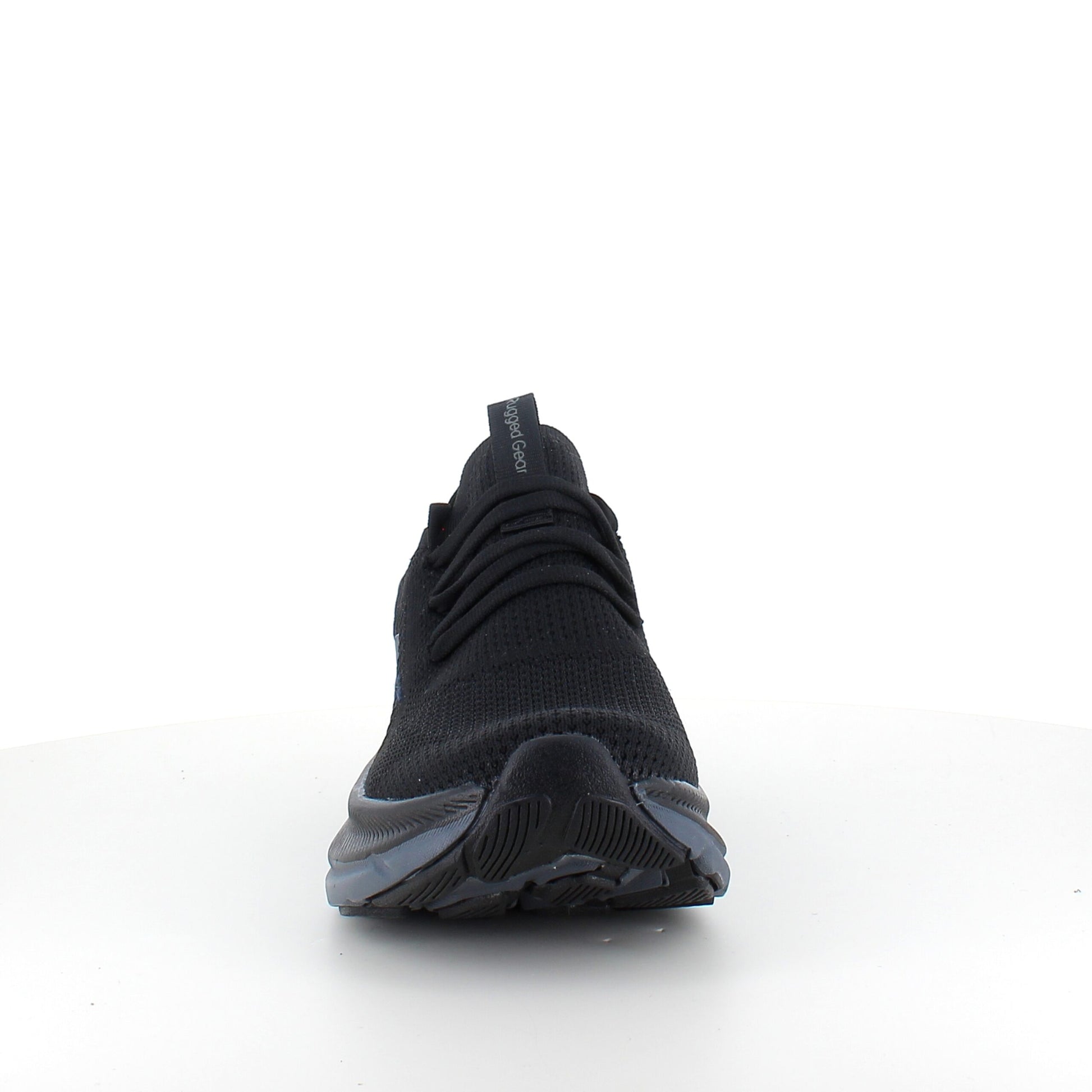 Skoen har en stødabsorberende og fleksibel ydersål, som giver godt fodfæste på forskellige underlag, samt en blød, formstøbt indersål, der sikrer komfort hele dagen.