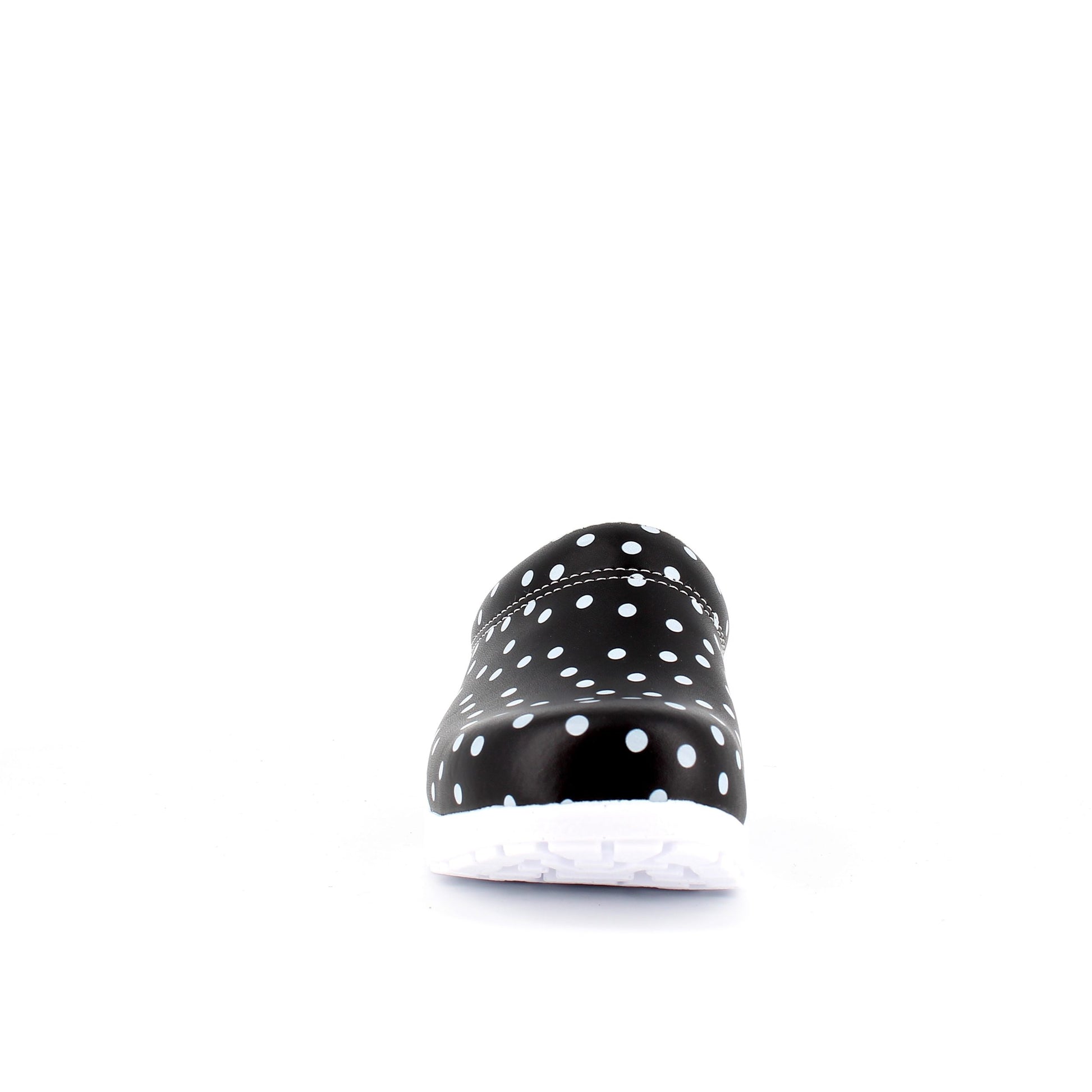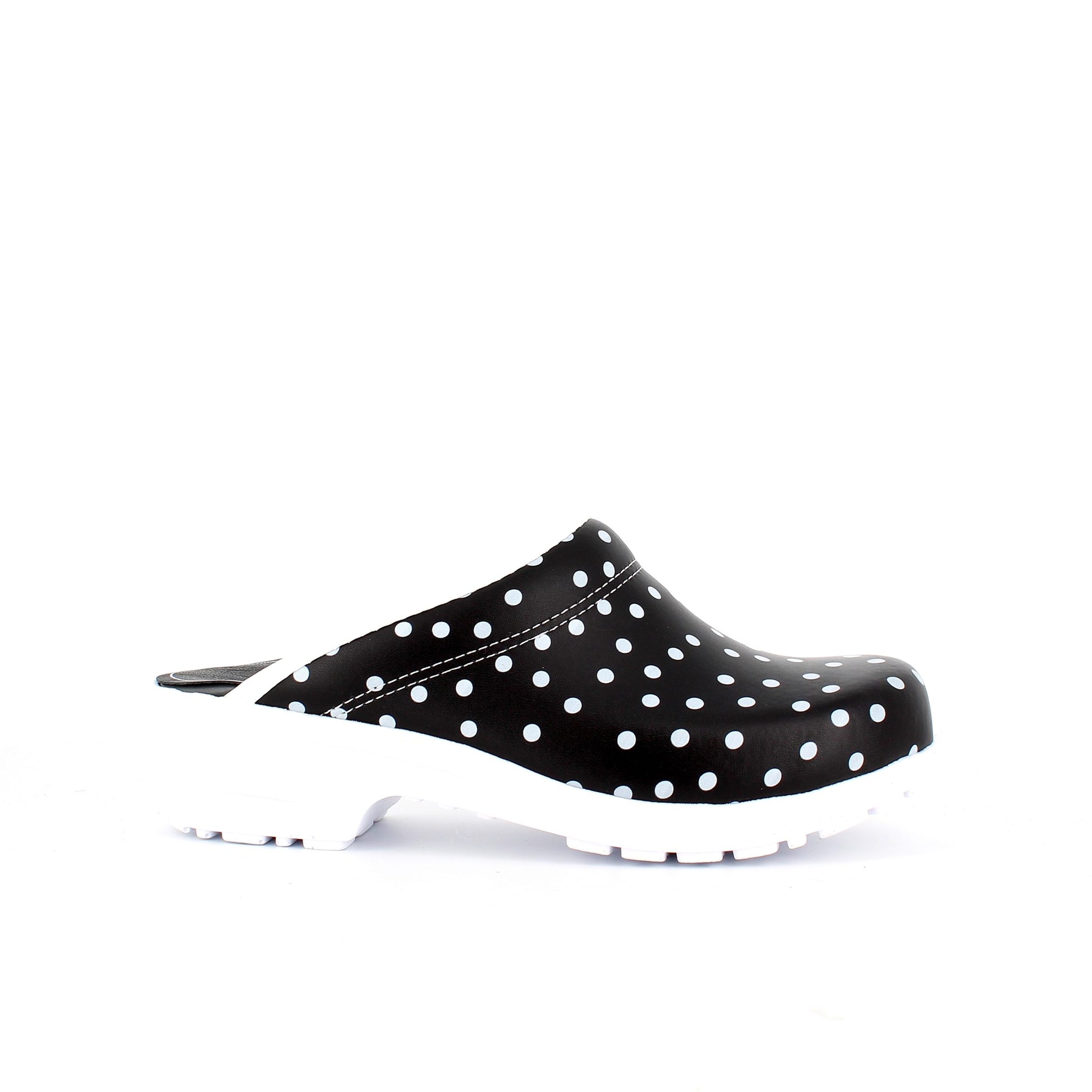 Sort træsko med polkaprikker uden kap