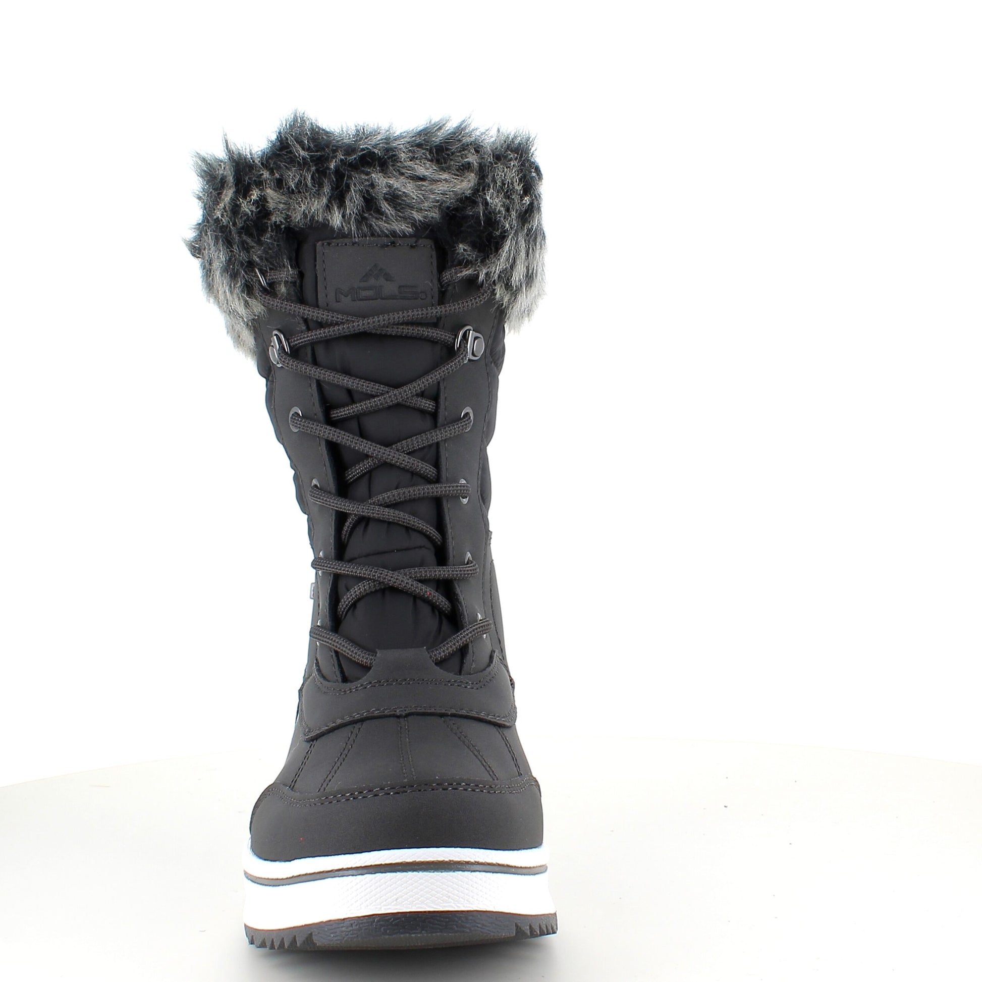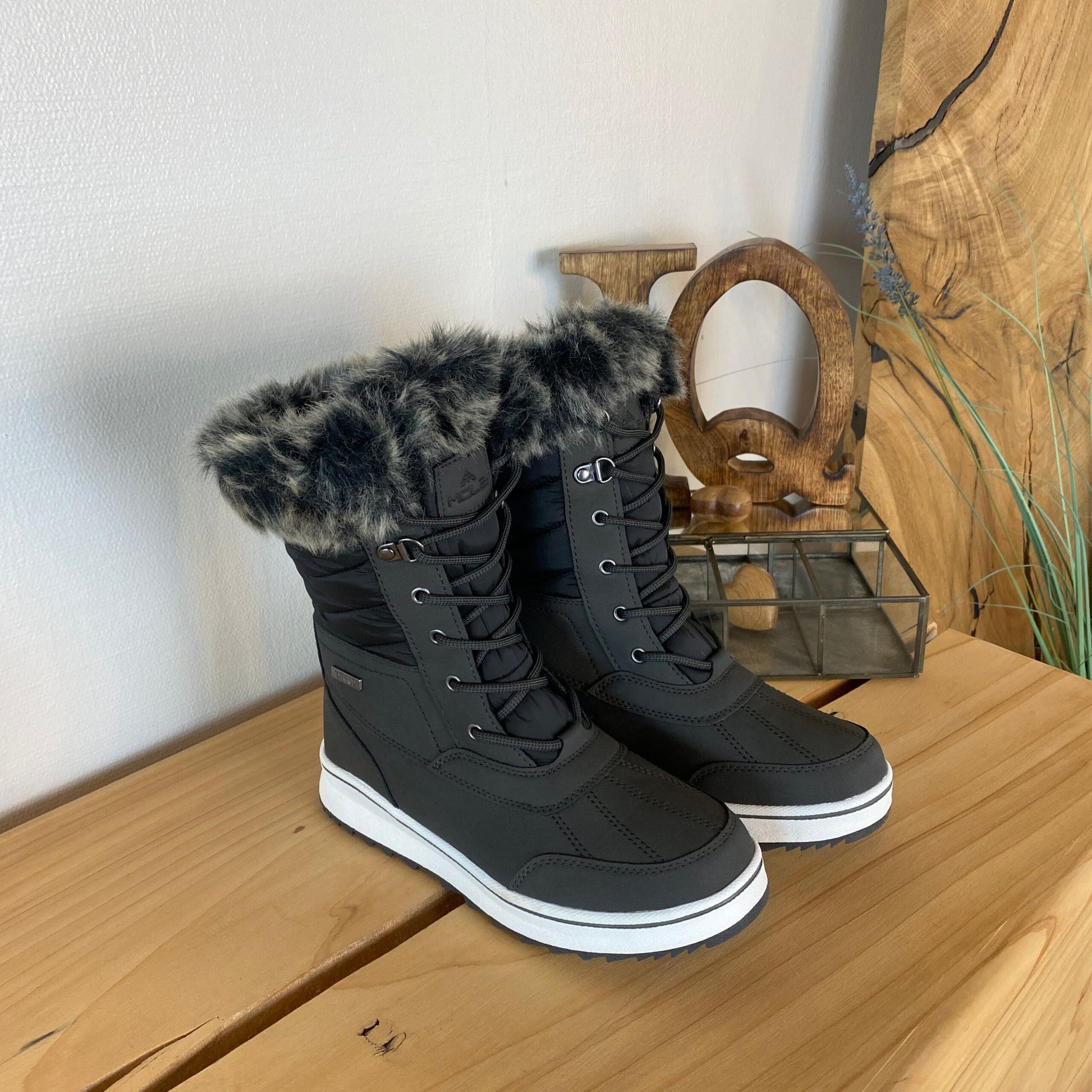 Sort vinterstøvle fra Mols, designet med vandtætning og pelskant, tilbyder både stil og komfort.