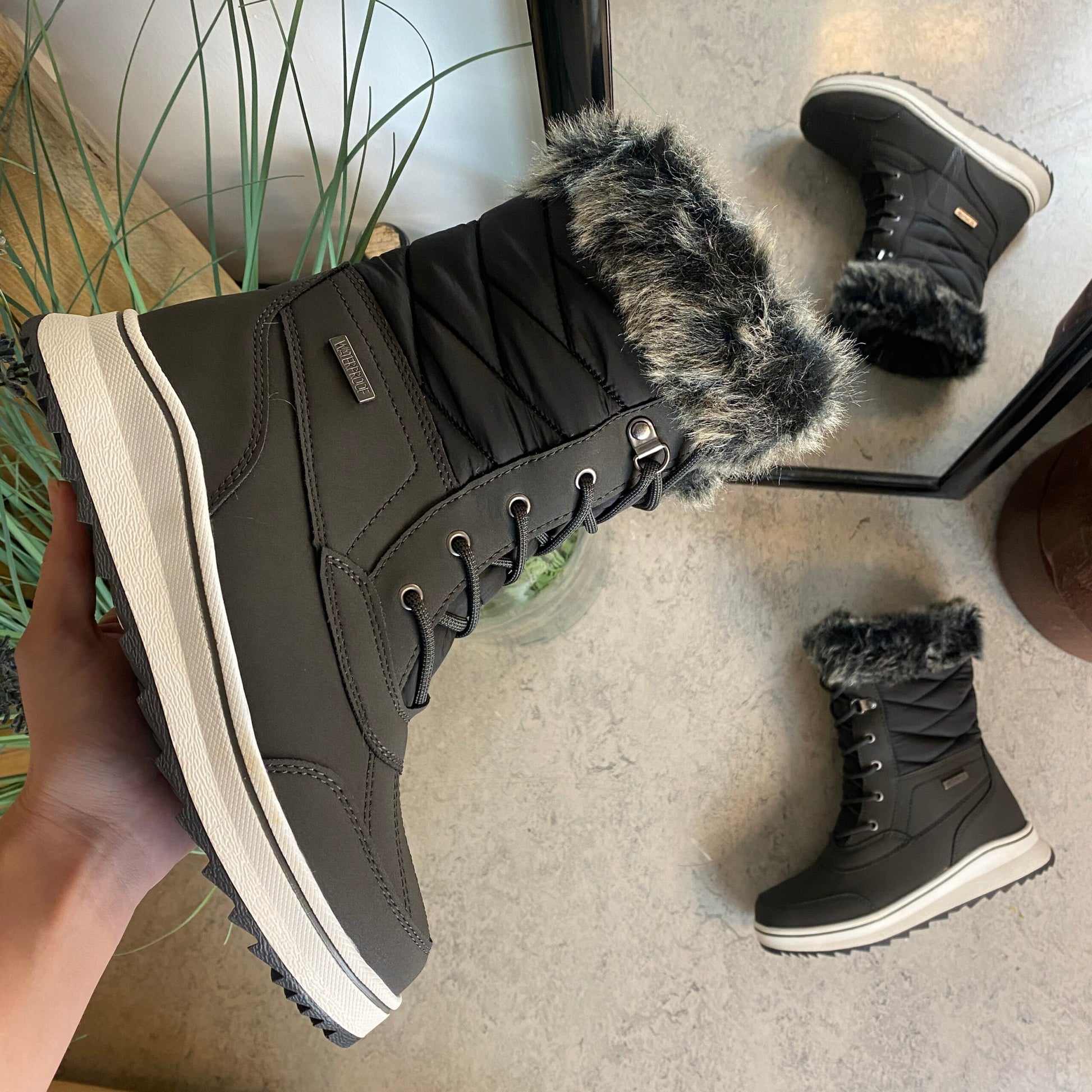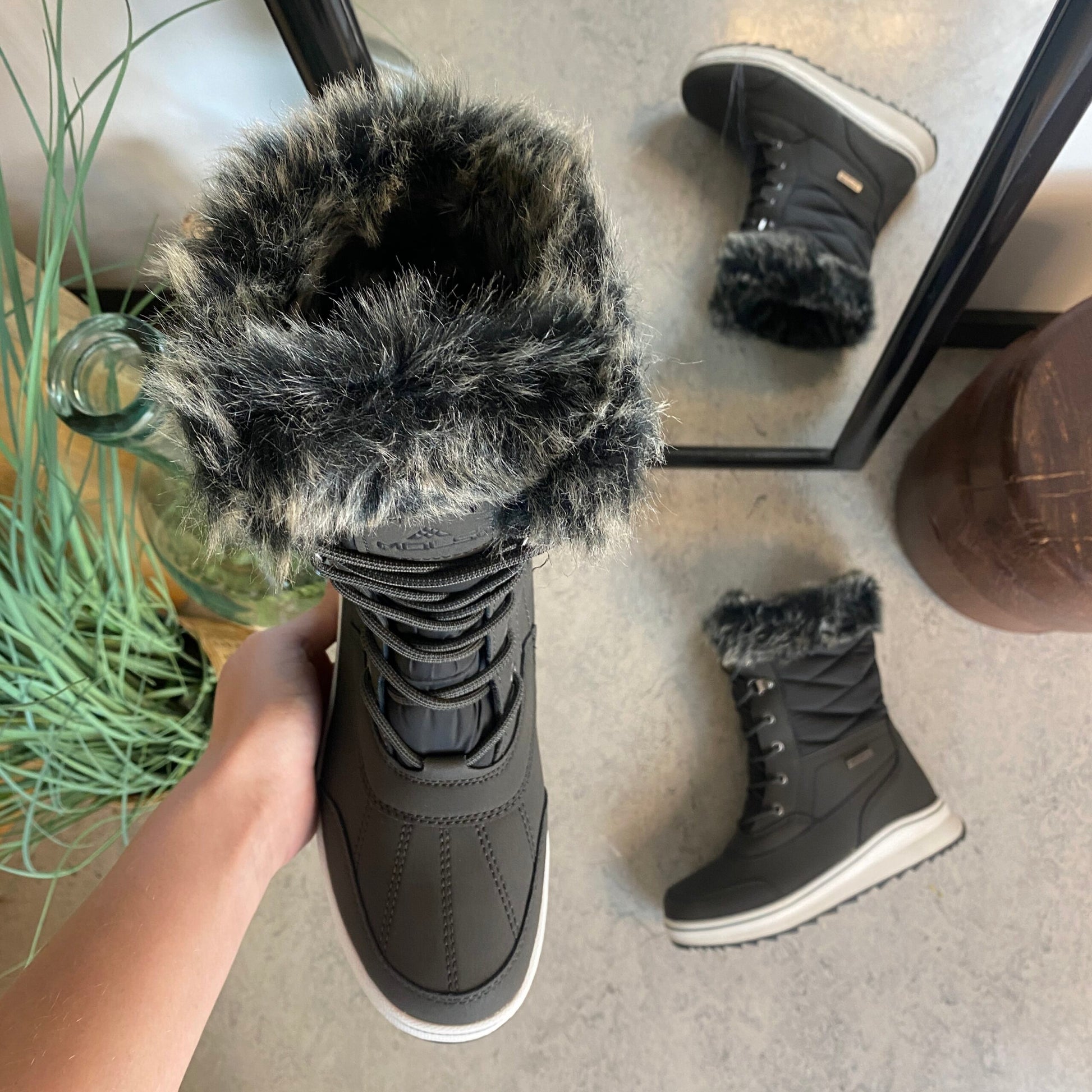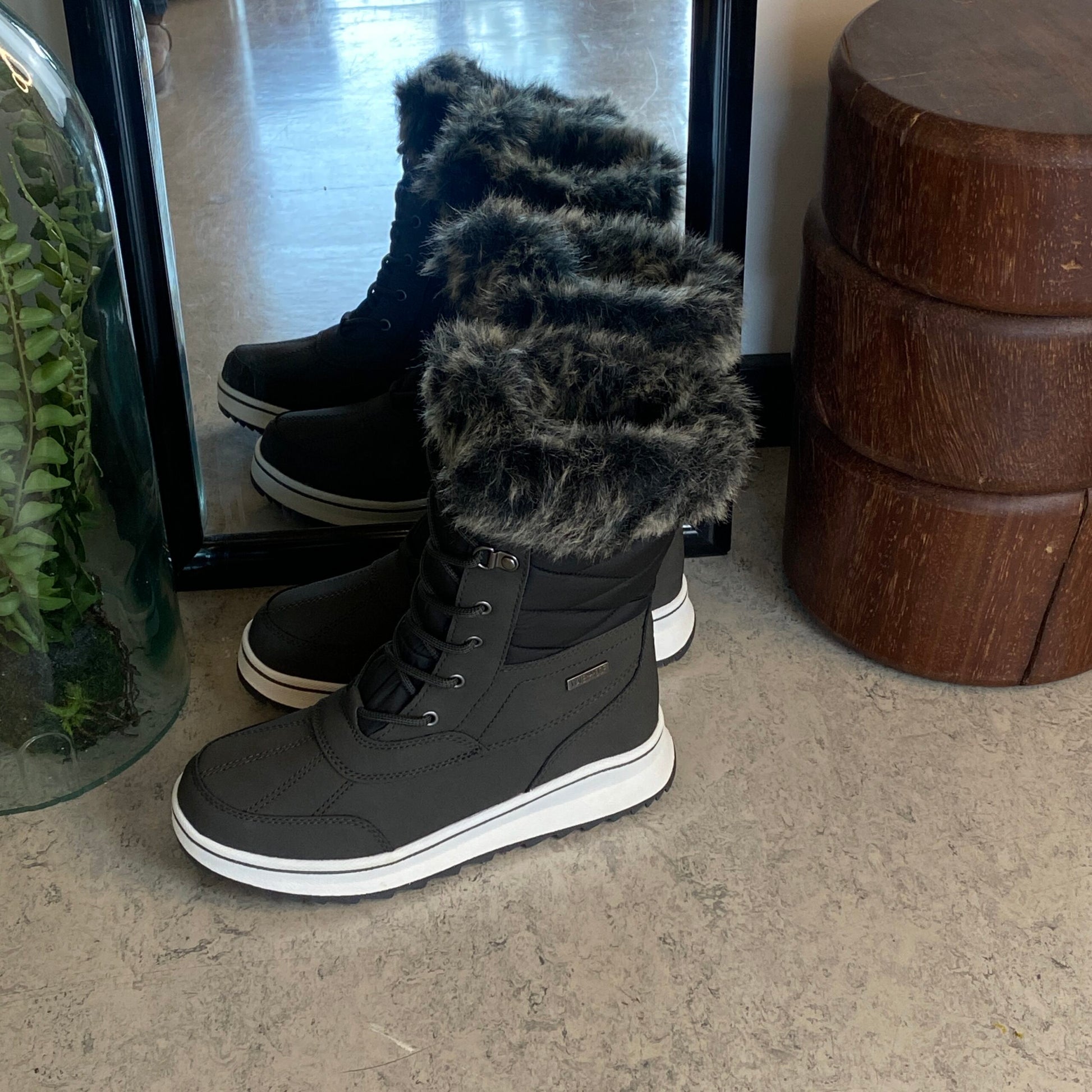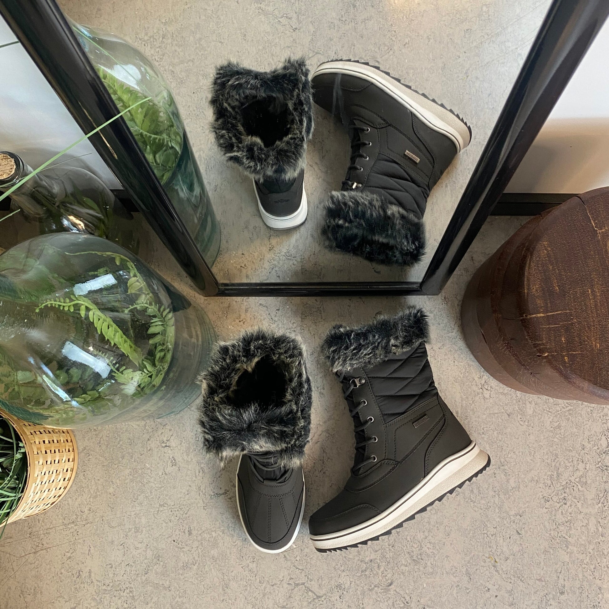 Sort vandtæt vinterstøvle fra Mols med pels kant