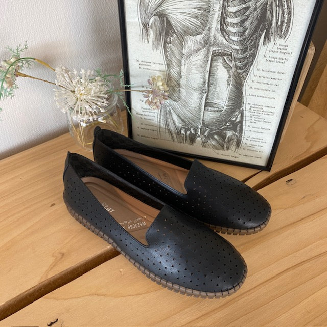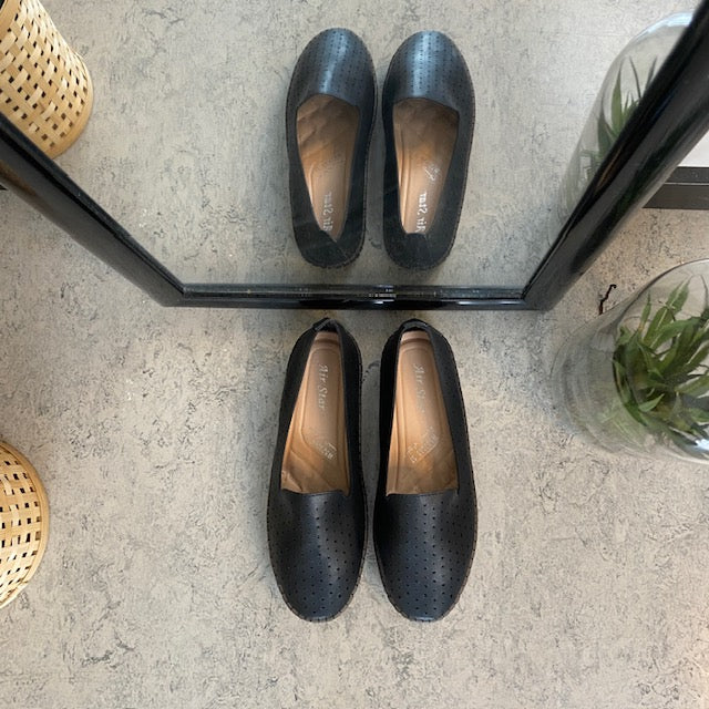 Sorte ballerinasko med fint, perforeret mønster