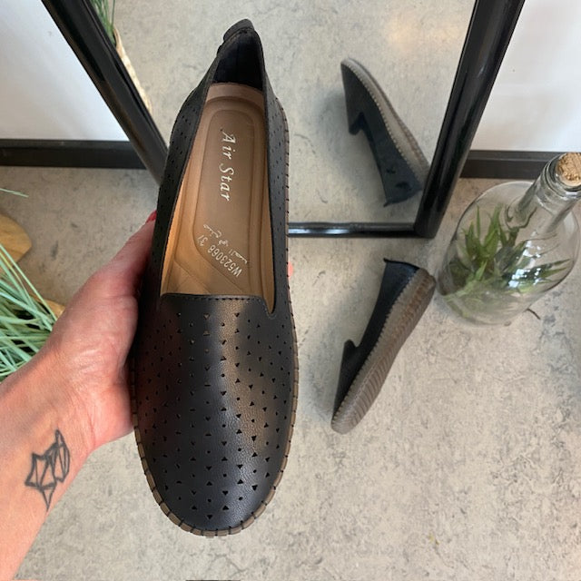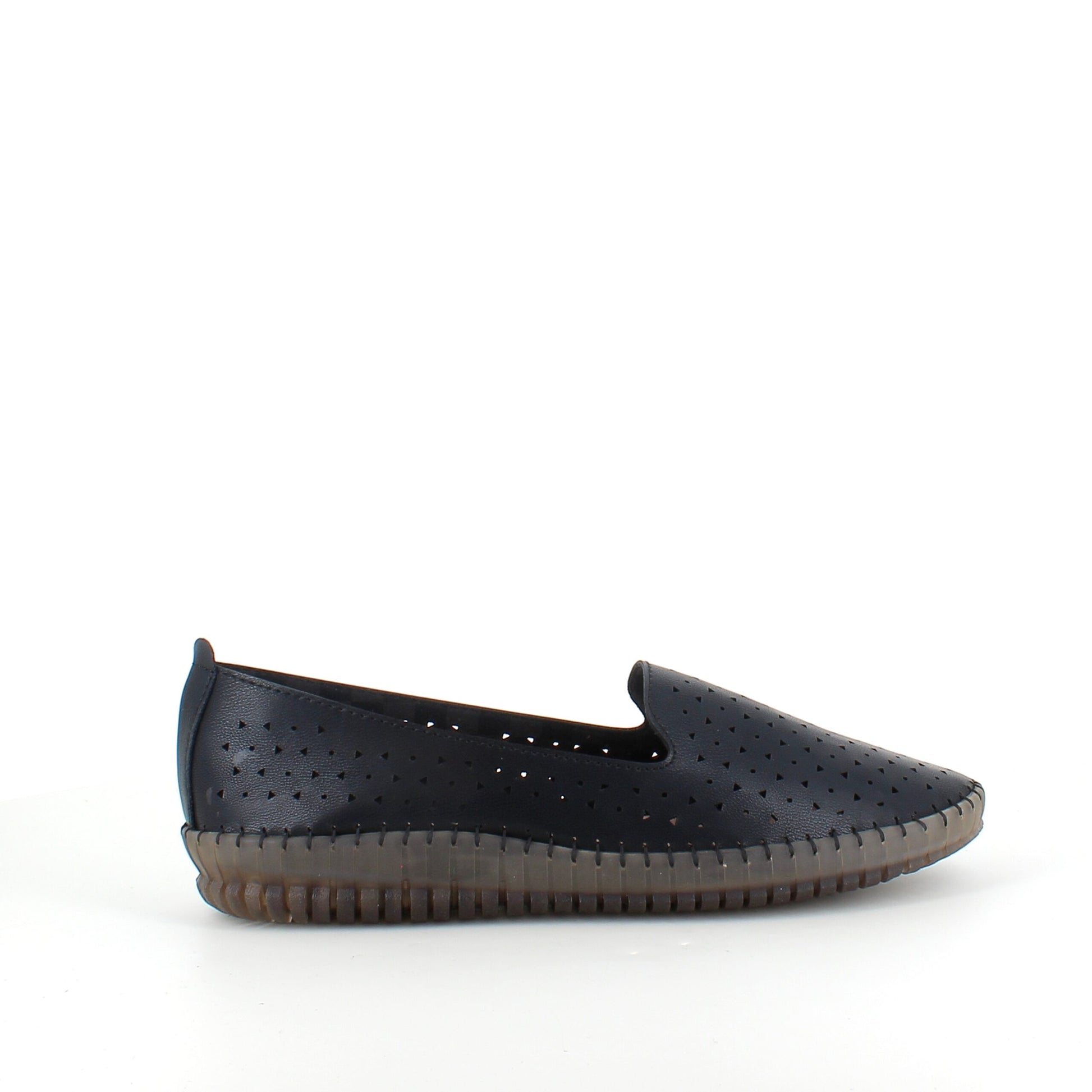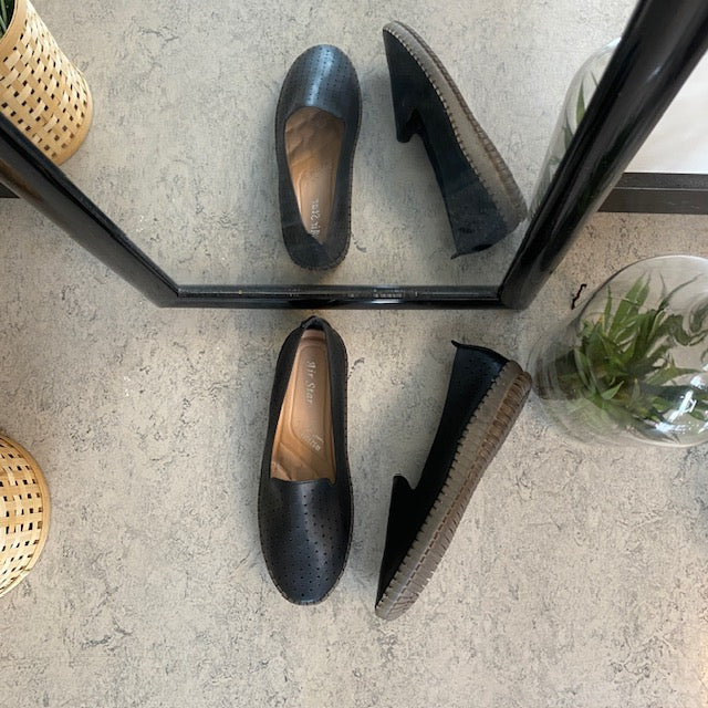 Sort ballerina med glat overdel, perforeret i et elegant mønster.