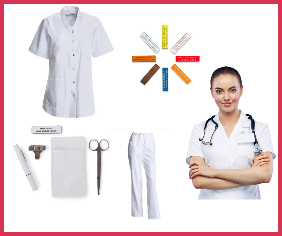 - Uniform i hvid, bukser og overdel. Alt kommer i størrelserne xs-4xl.