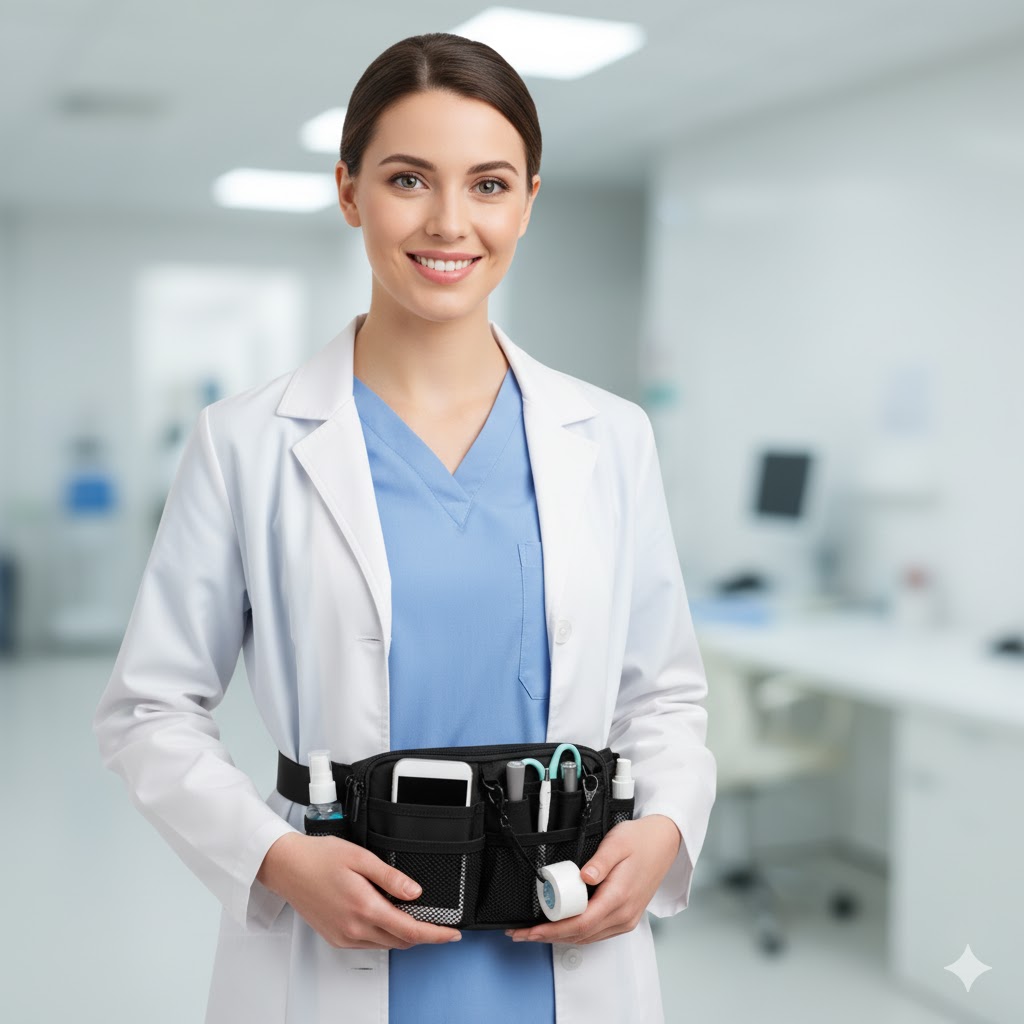 Denne store og funktionelle taljetaske er designet til dig, der arbejder i sundhedssektoren og har brug for hurtig adgang til dit udstyr i en travl arbejdsdag.