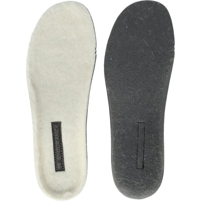 Denne sål er fremstillet i en kombination af 30 % uld og 70 % filt, som giver både varme, åndbarhed og blød støtte.