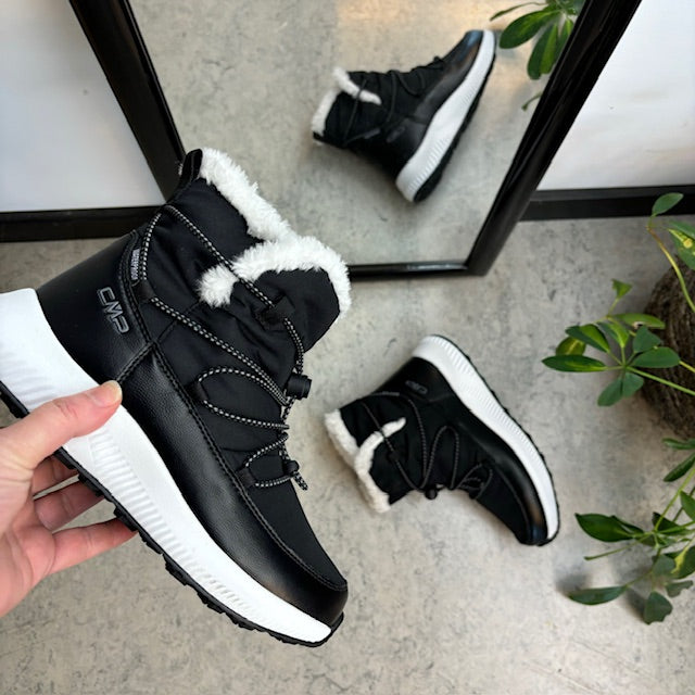 Denne vandafvisende sorte vinterstøvle fra CMP kombinerer stilrent design med praktisk funktionalitet, hvilket gør den ideel til vintervejr.