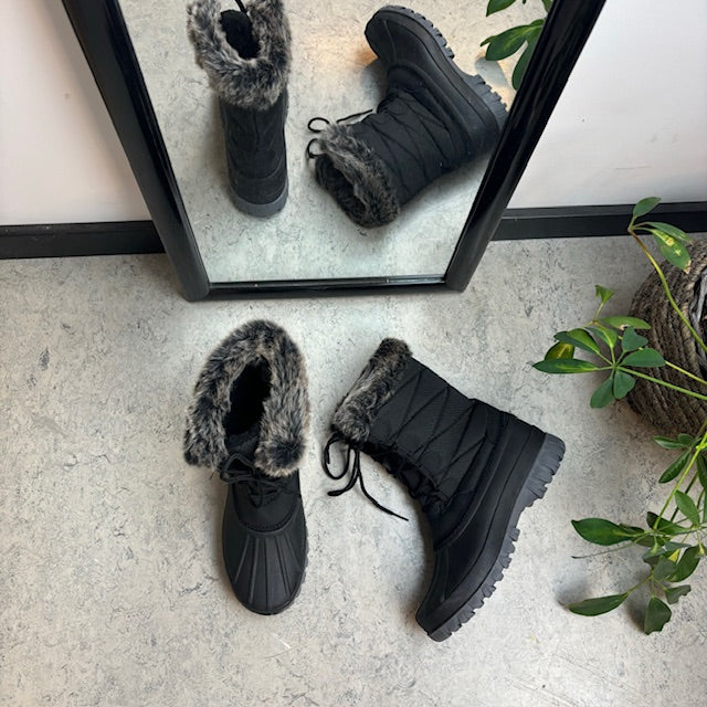 Sort vinterstøvle med flot pelskant øverst på det 21 cm høje skaft.
