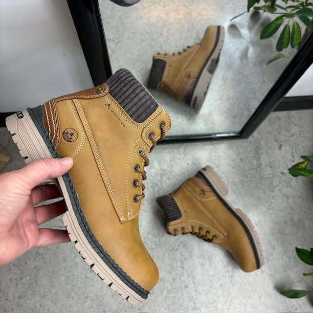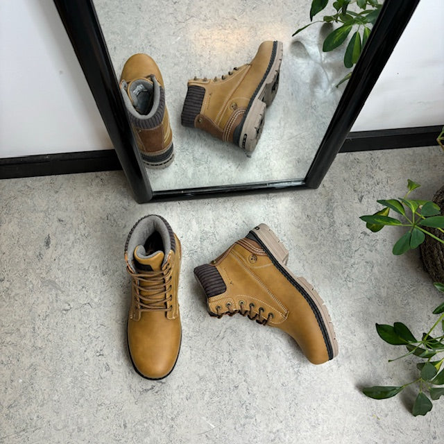 Støvlen har et polstret in-step og en klassisk snørrelukning, hvilket giver en god pasform.