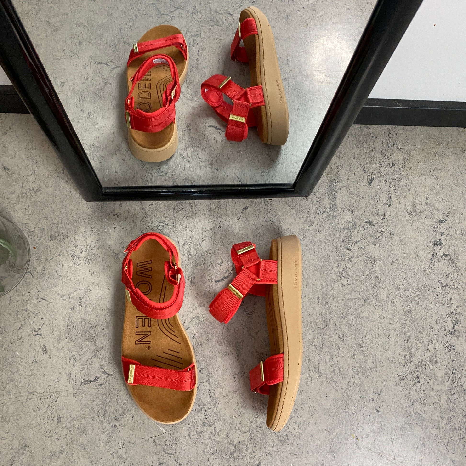 Woden sandal i rød er en pålidelig løsning, når du vil kombinere støtte, funktion & et levende design i én og samme model.