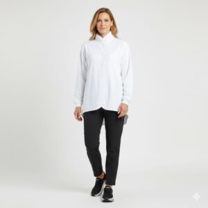 Langærmet interlock T-shirt i blød antipillingkvalitet. Let figursyet.