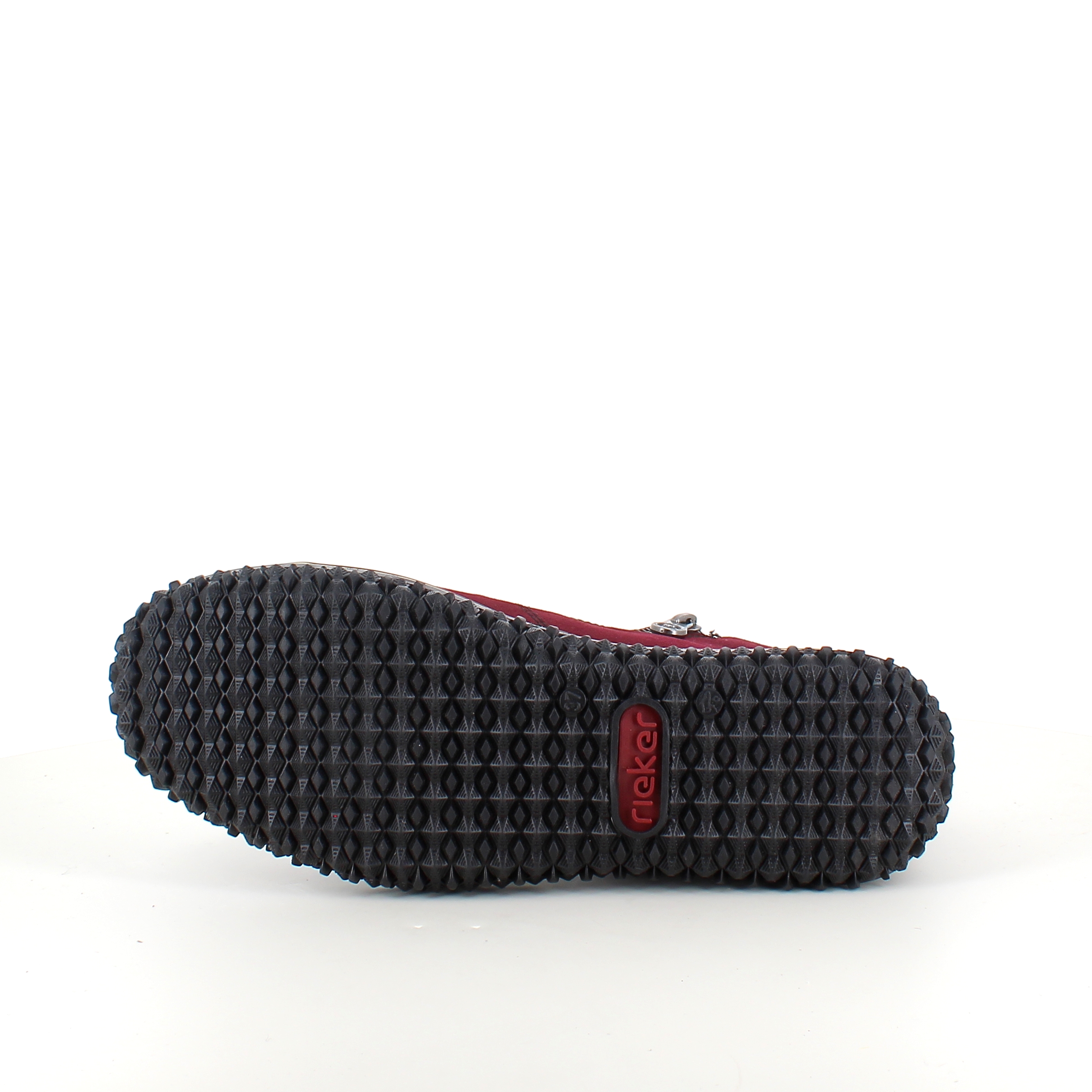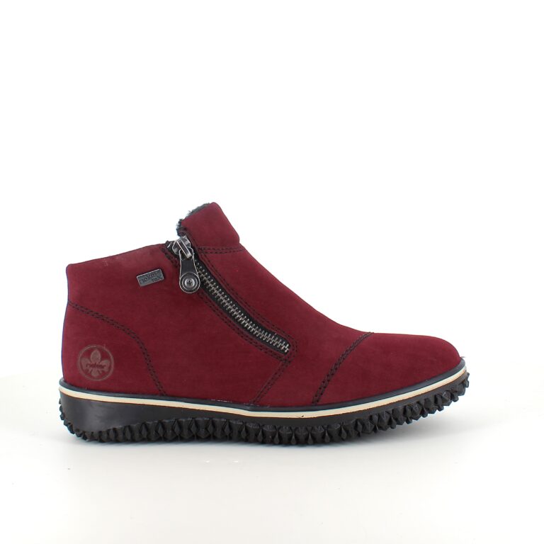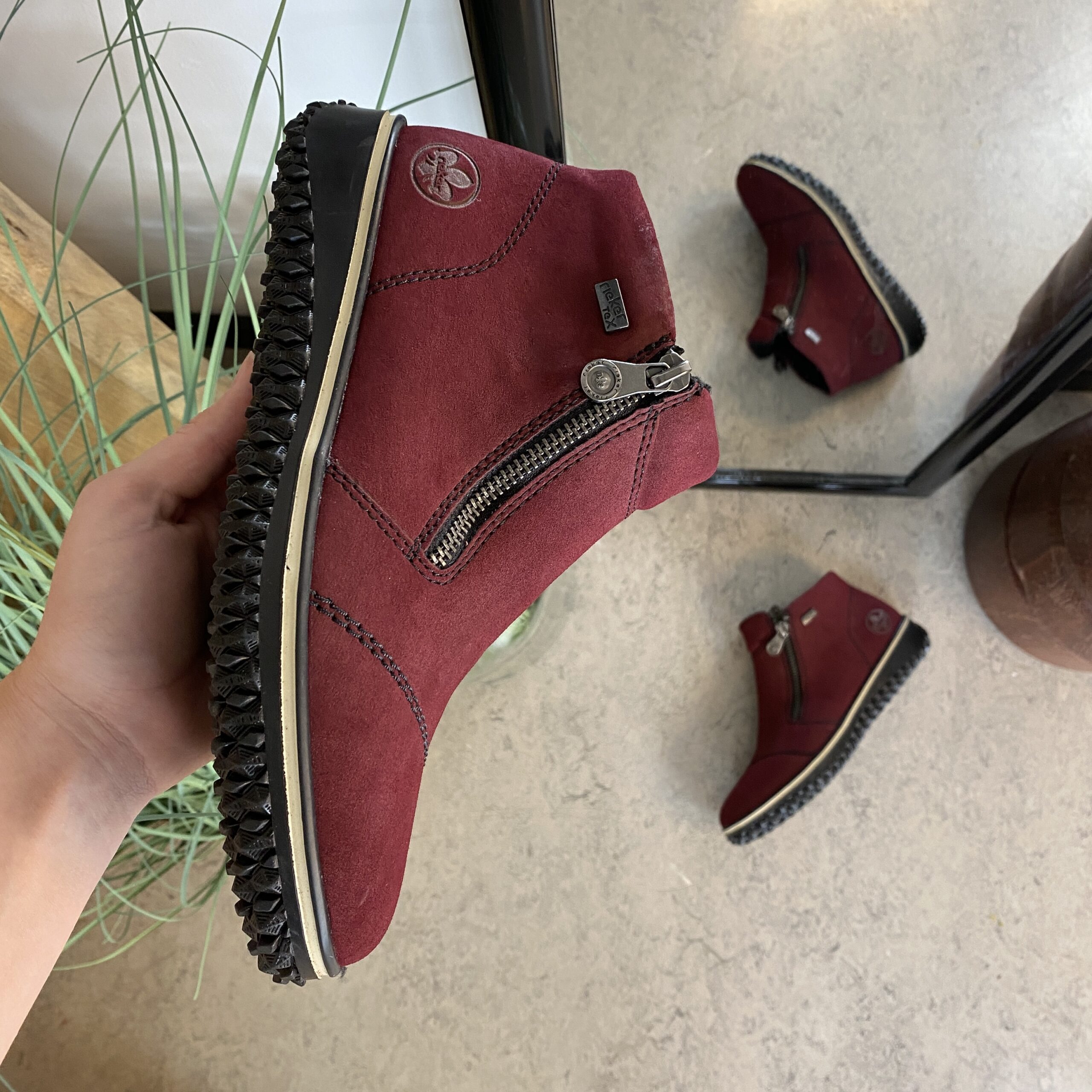 Denne Rieker støvle til damer i bordeaux kombinerer stilfuldt design med praktisk funktionalitet og komfort hele dagen.