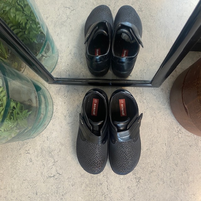 Fordele: nem rengøring, slidstærkt PU-materiale, fleksibel og let PU-sål samt brugervenlig velcrolukning.