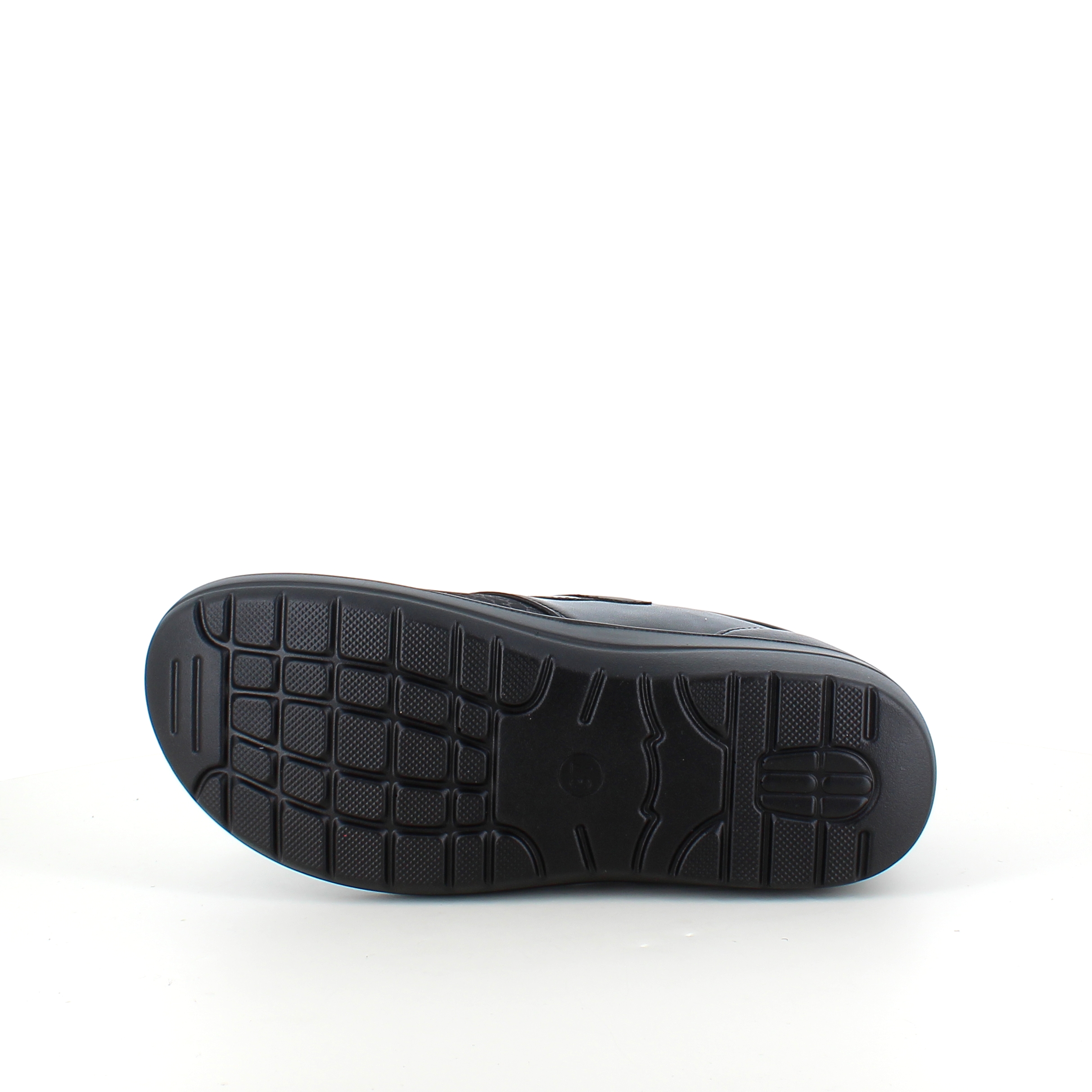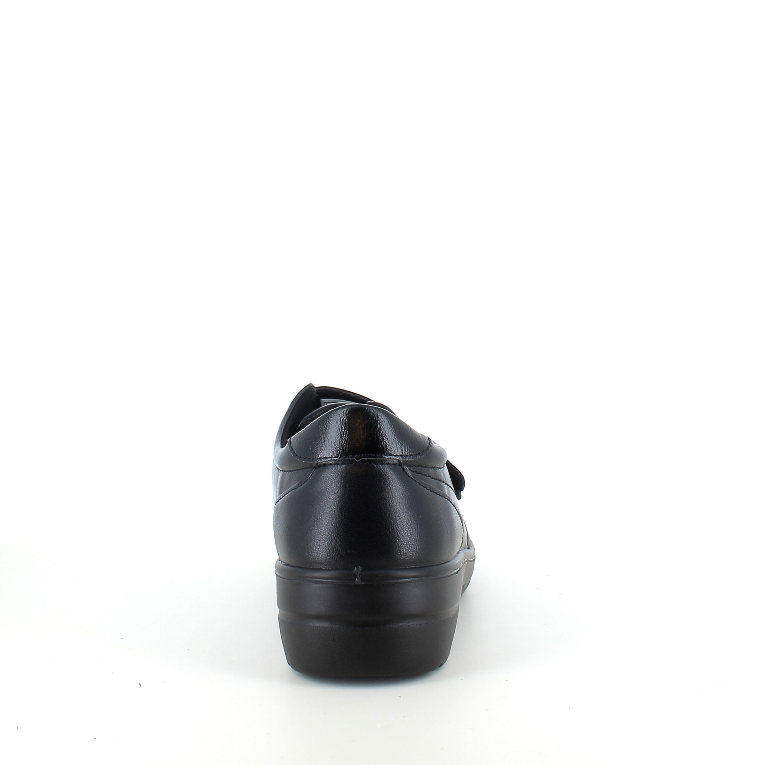 Klassisk og komfortabel damesko i sort PU med moderne mønster på overdelen.