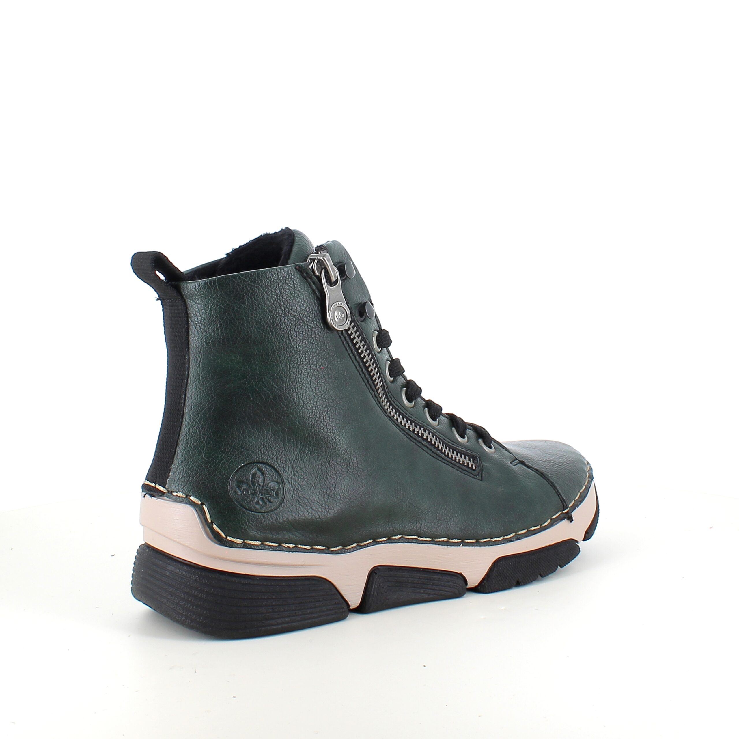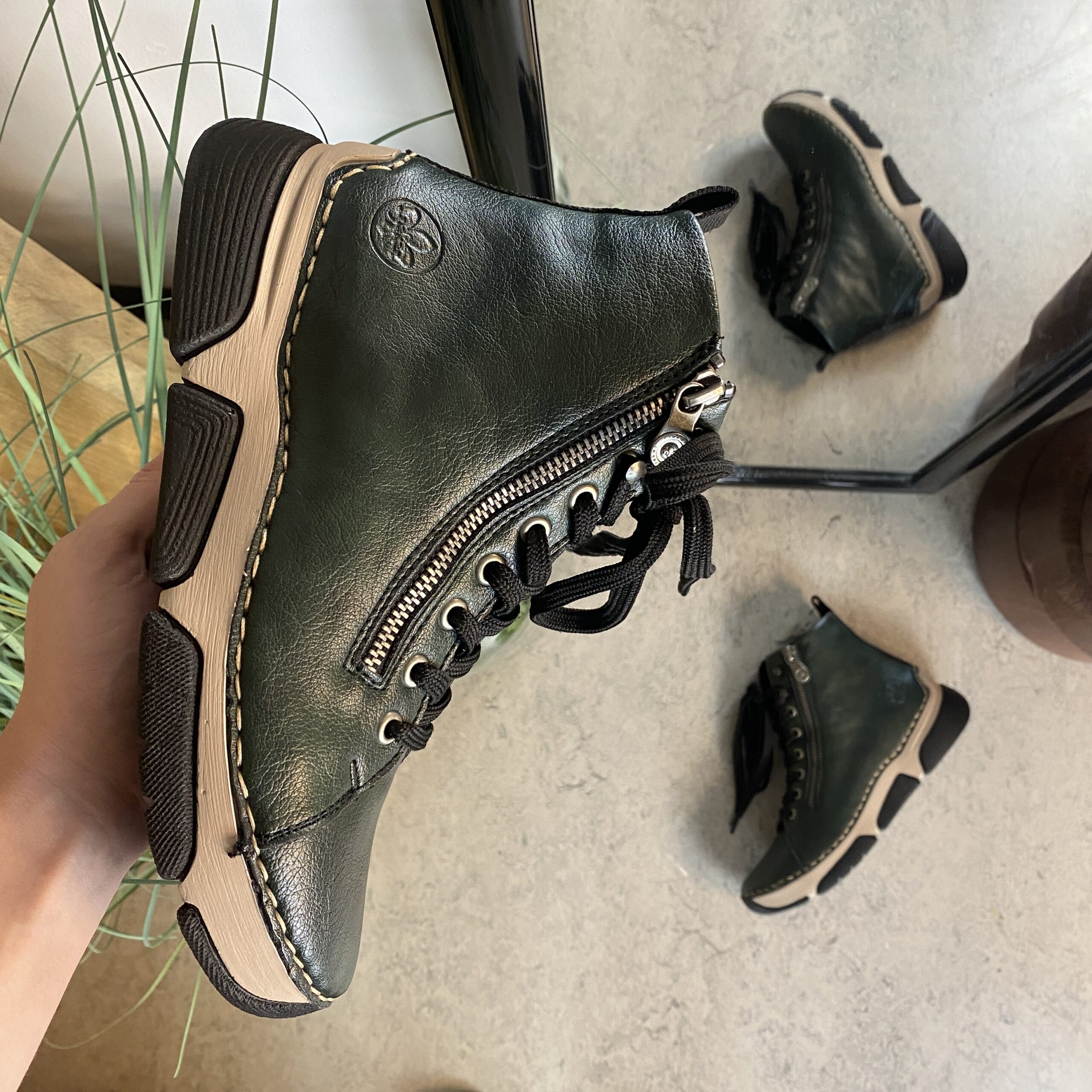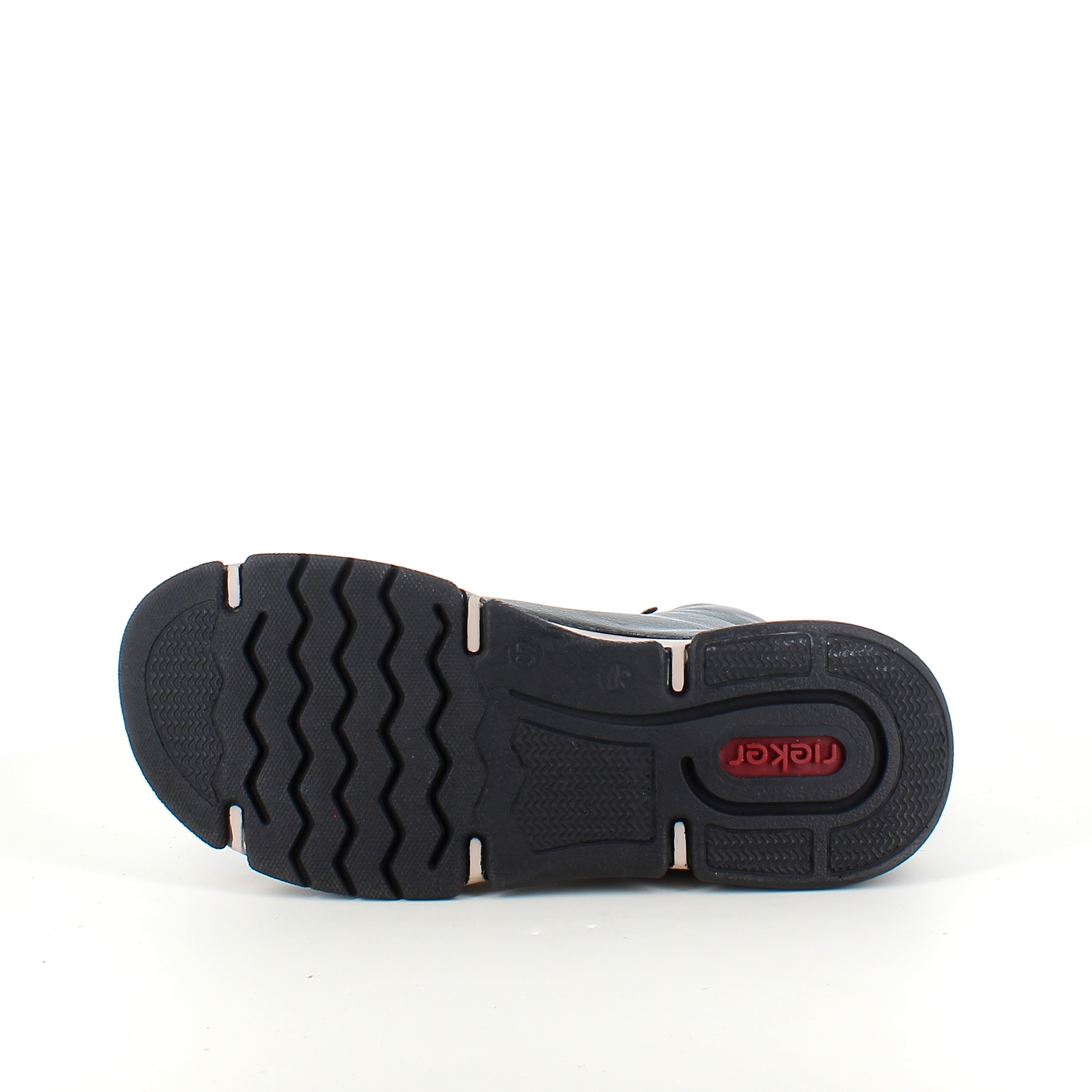 Indvendigt er den foret med let materiale og udstyret med en blød Rieker Antistress sål, der støtter fodens naturlige bevægelse og giver en behagelig følelse hele dagen.