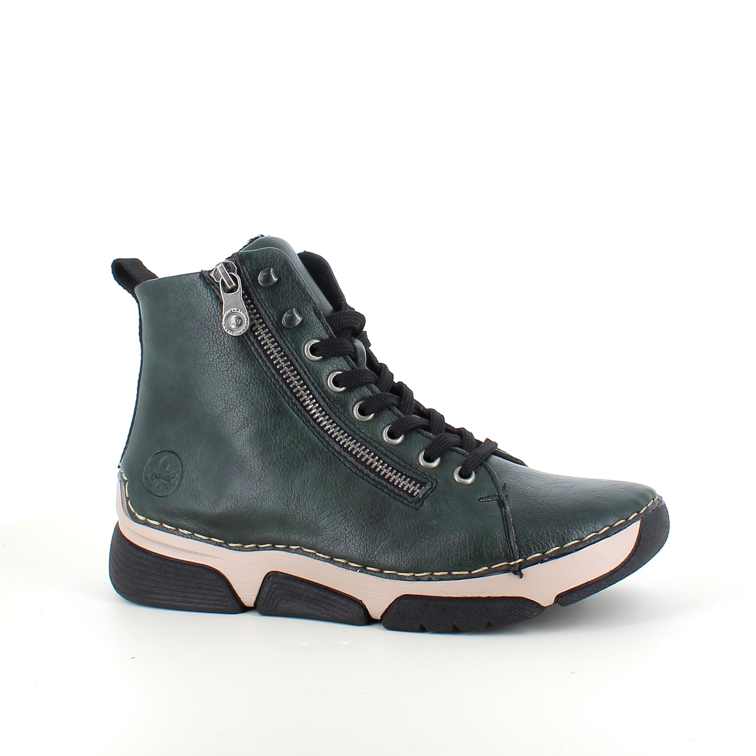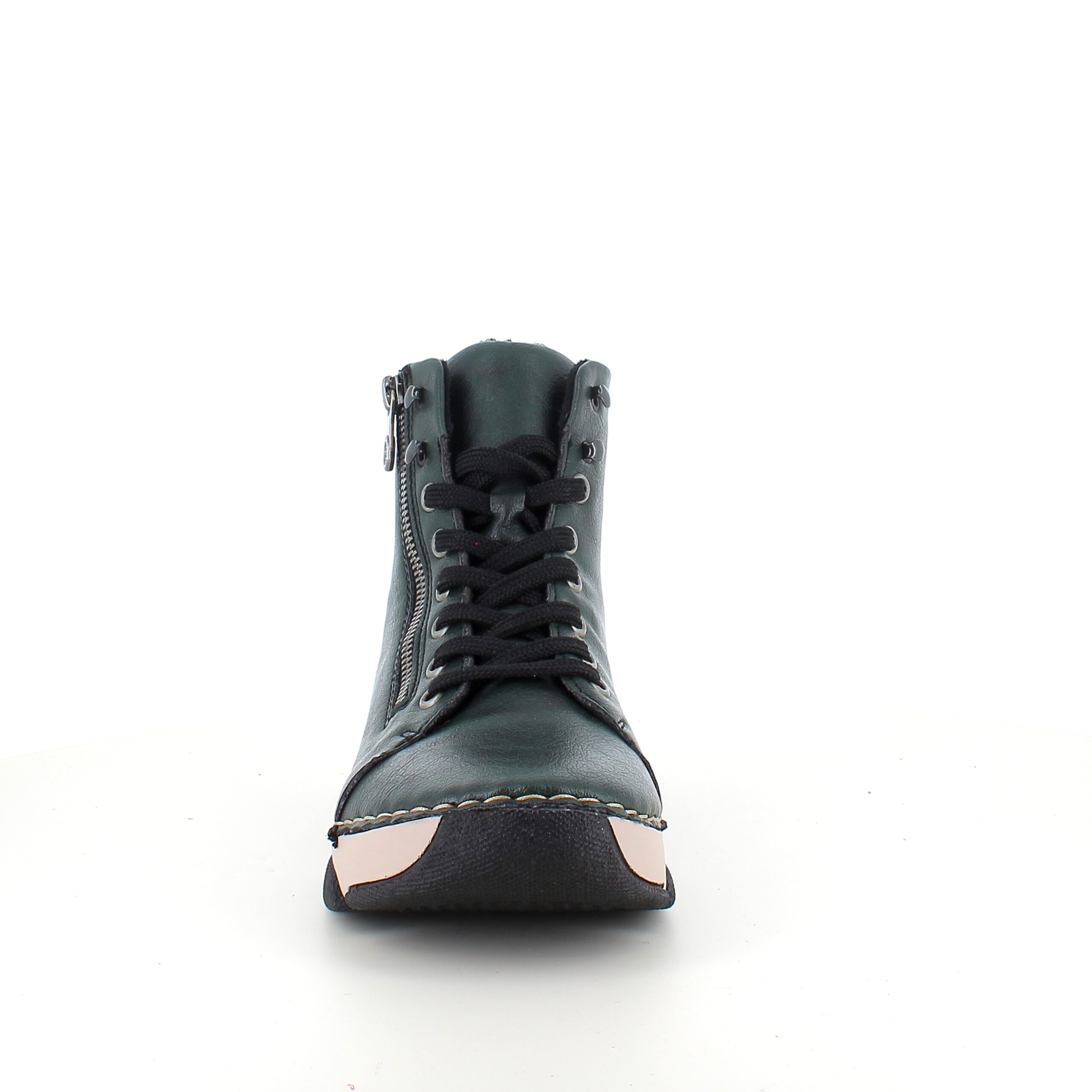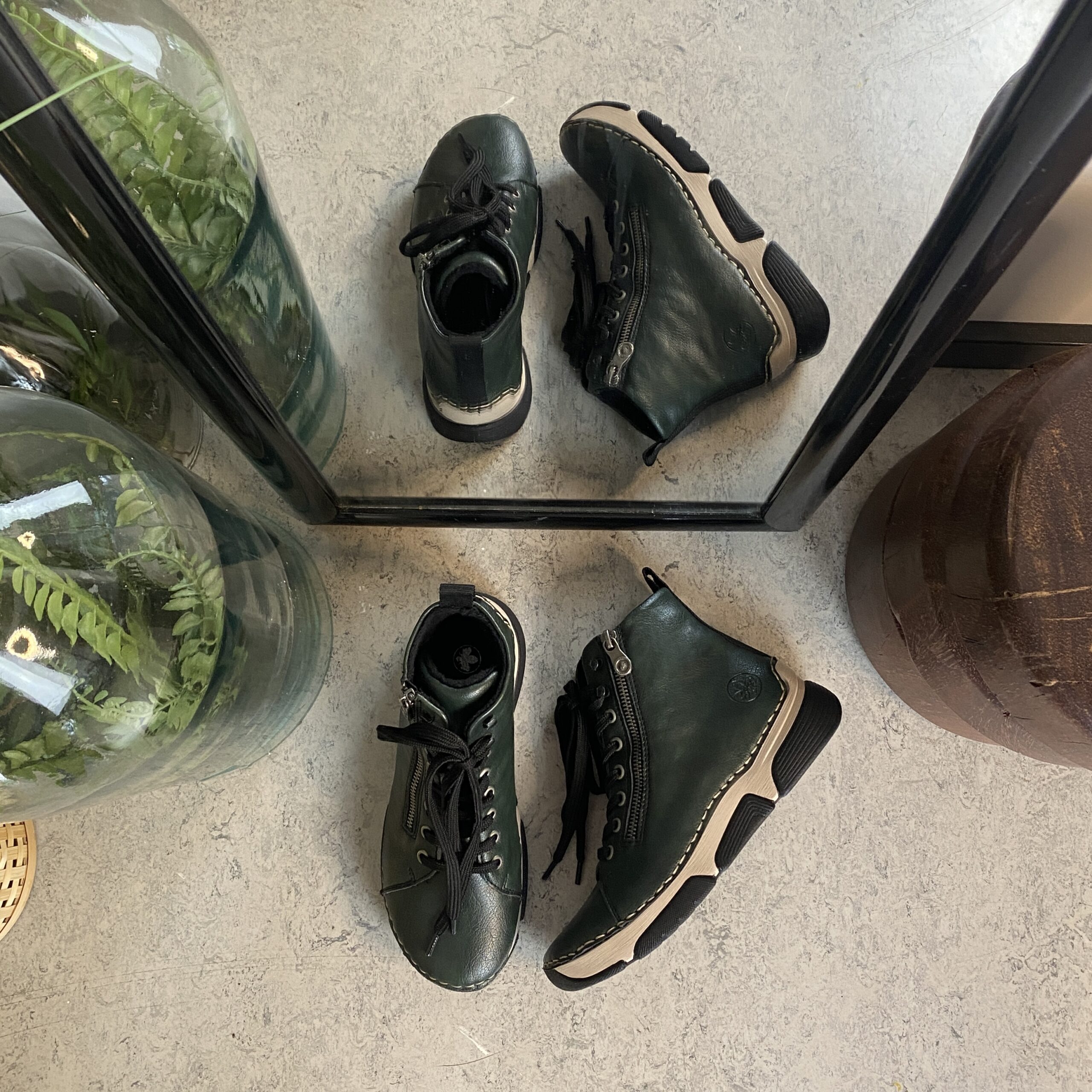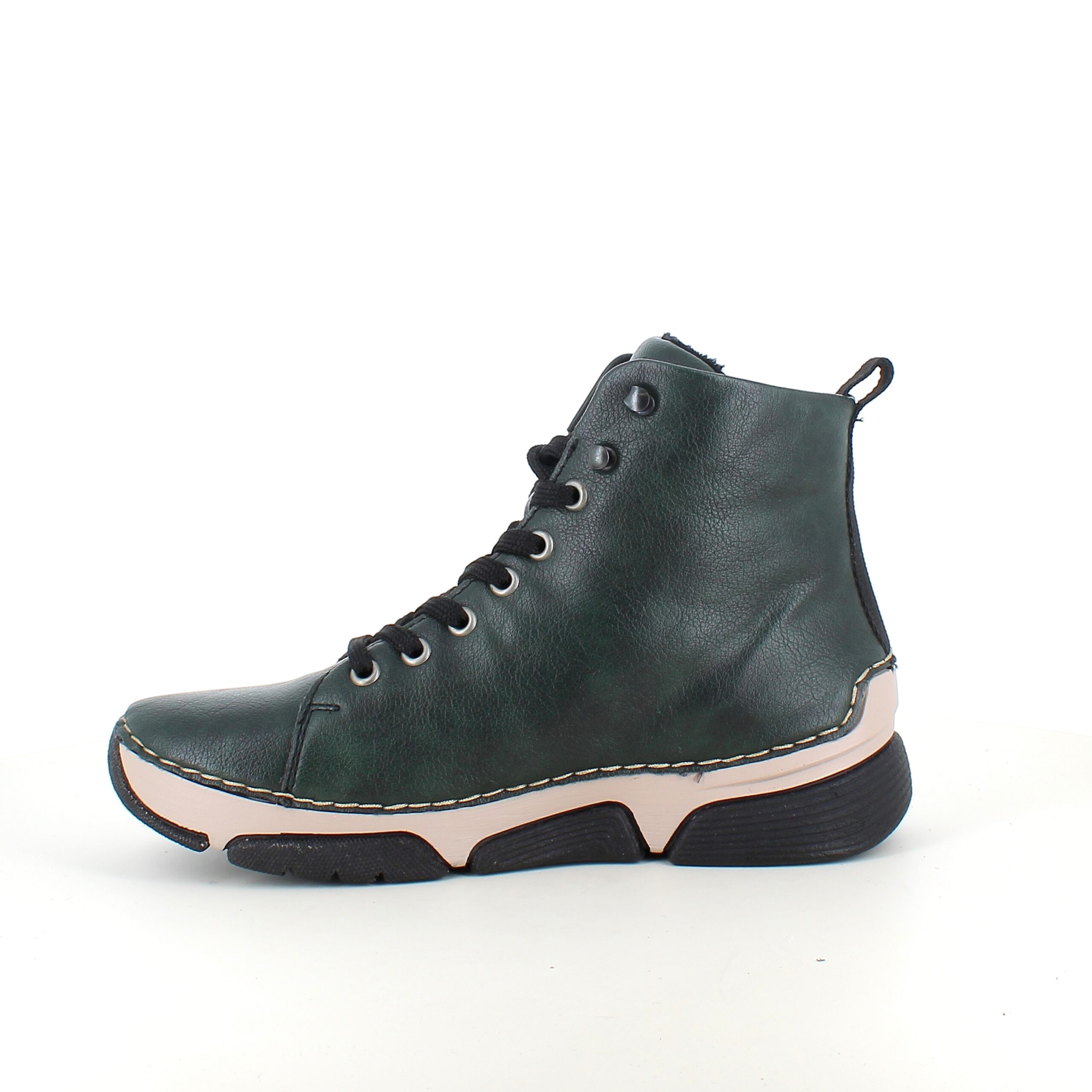 Indvendigt er den foret med let materiale og udstyret med en blød Rieker Antistress sål, der støtter fodens naturlige bevægelse og giver en behagelig følelse hele dagen.