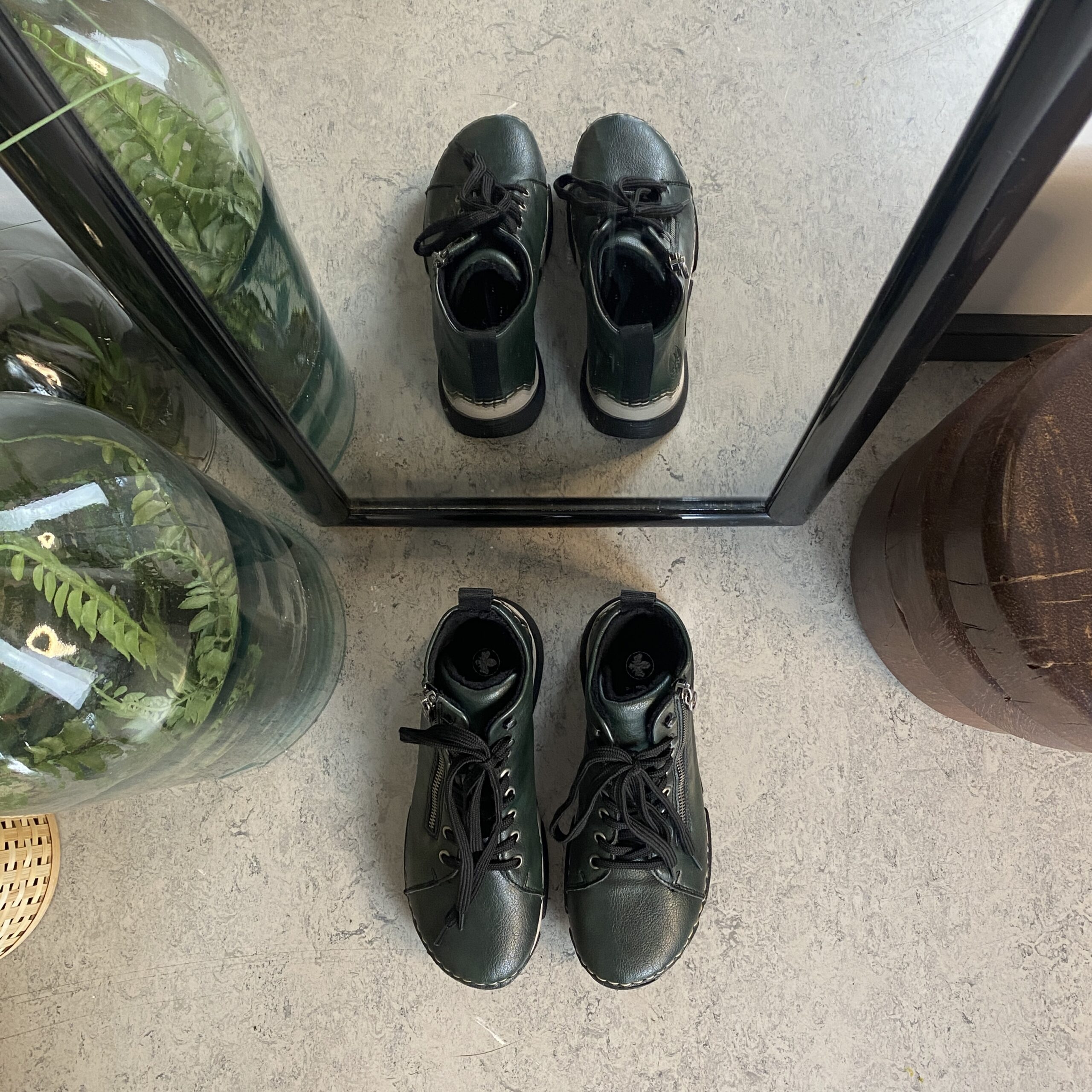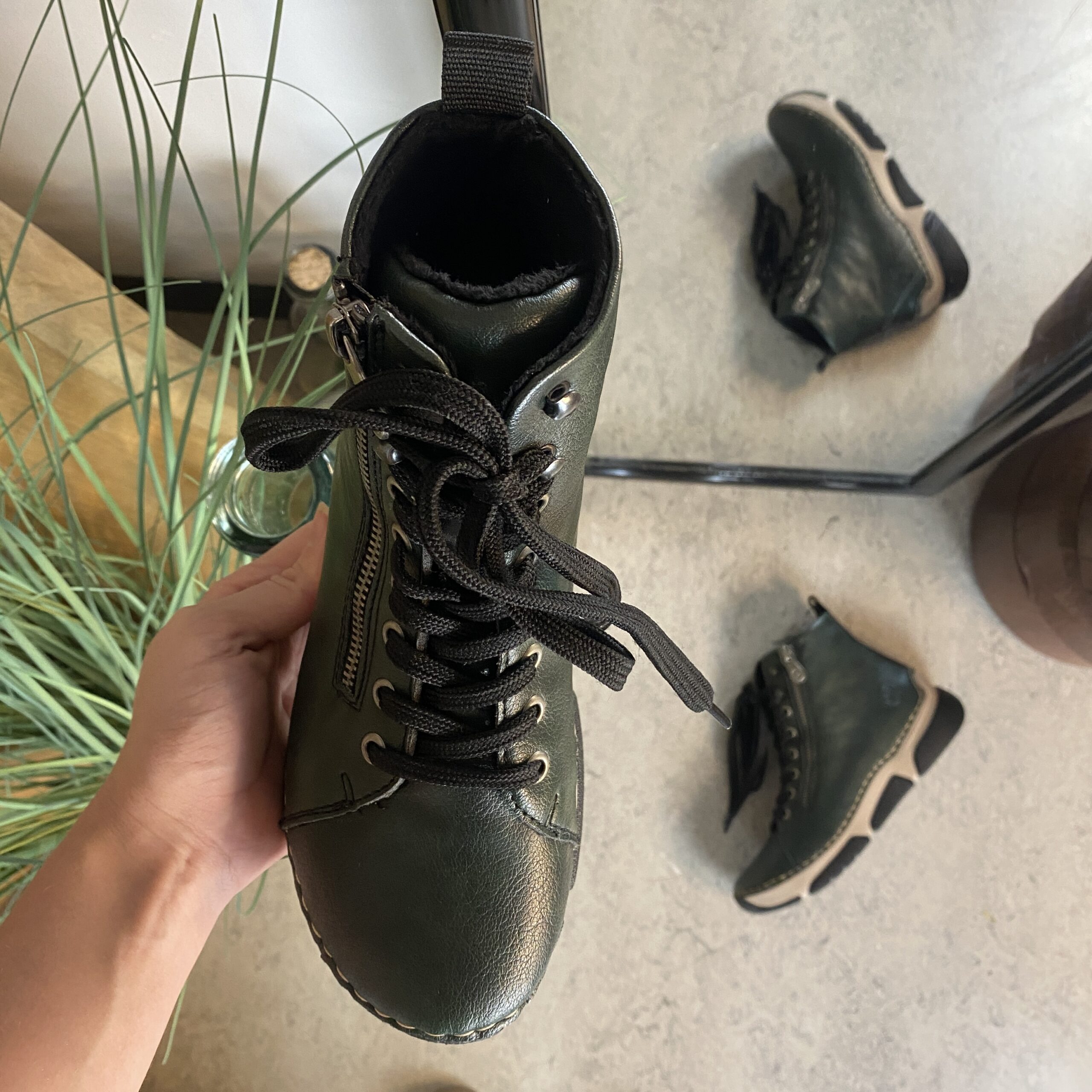 Støvlen har snørebånd og lynlås, så den er nem at tage af og på.