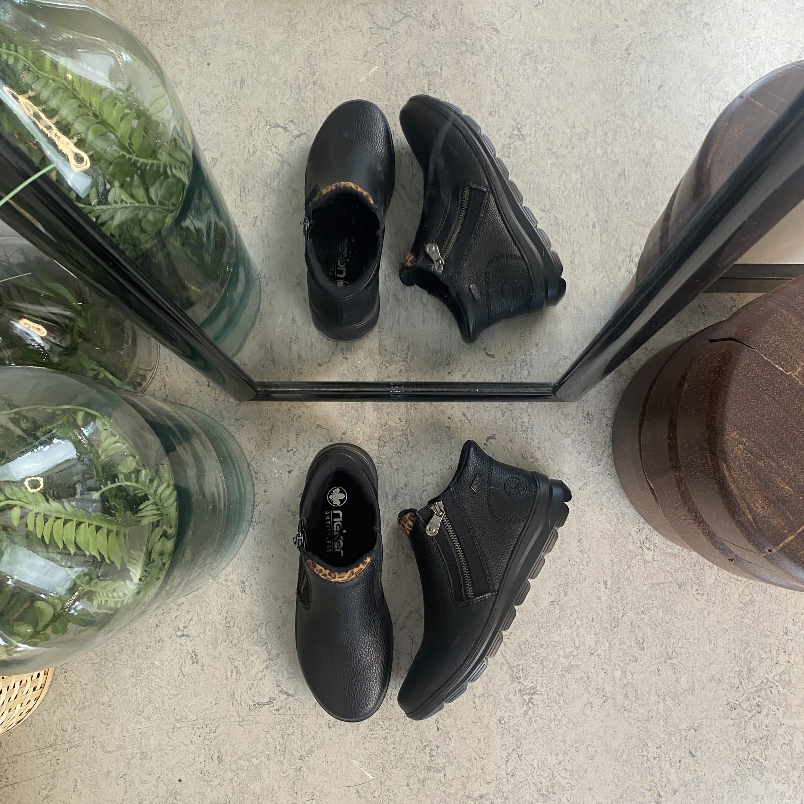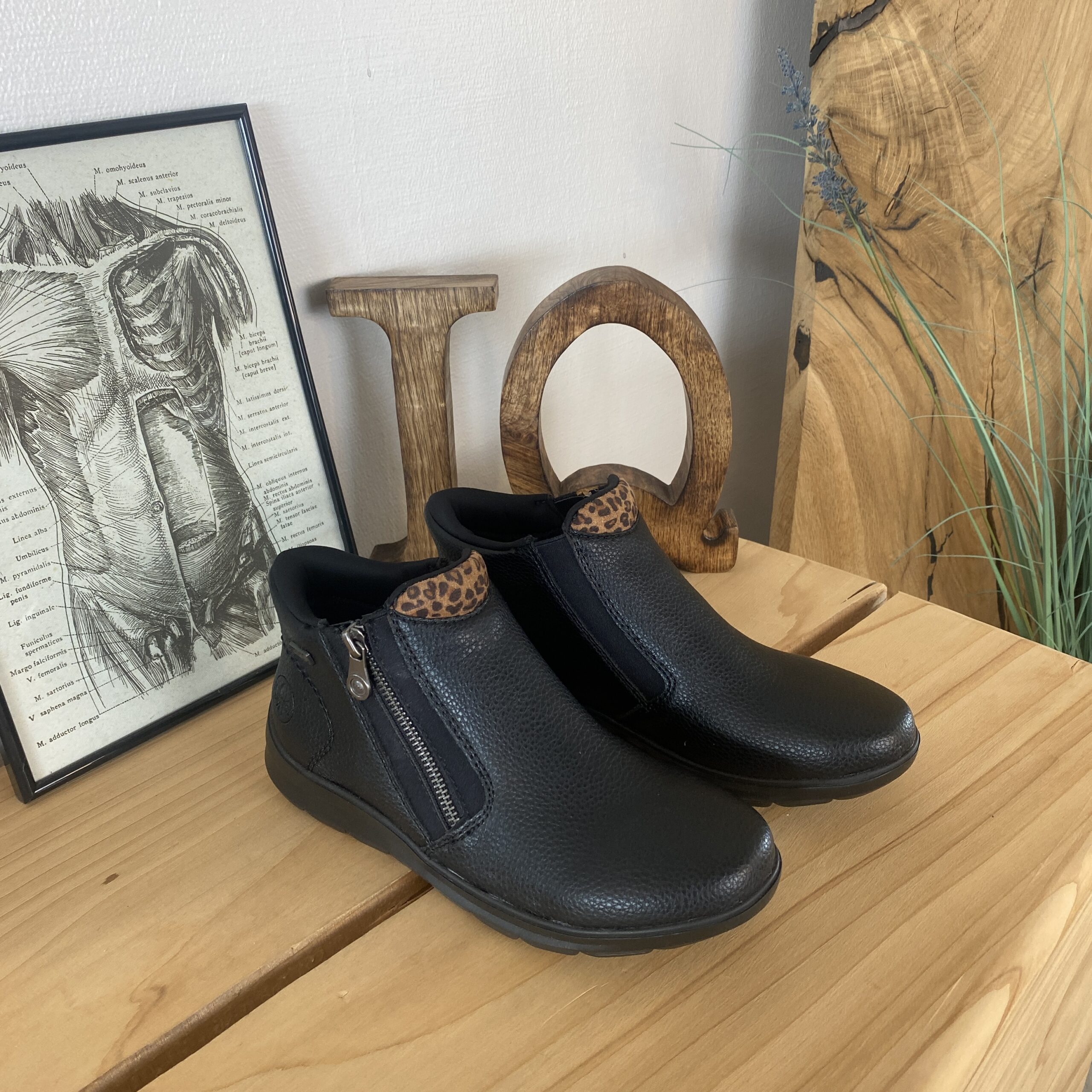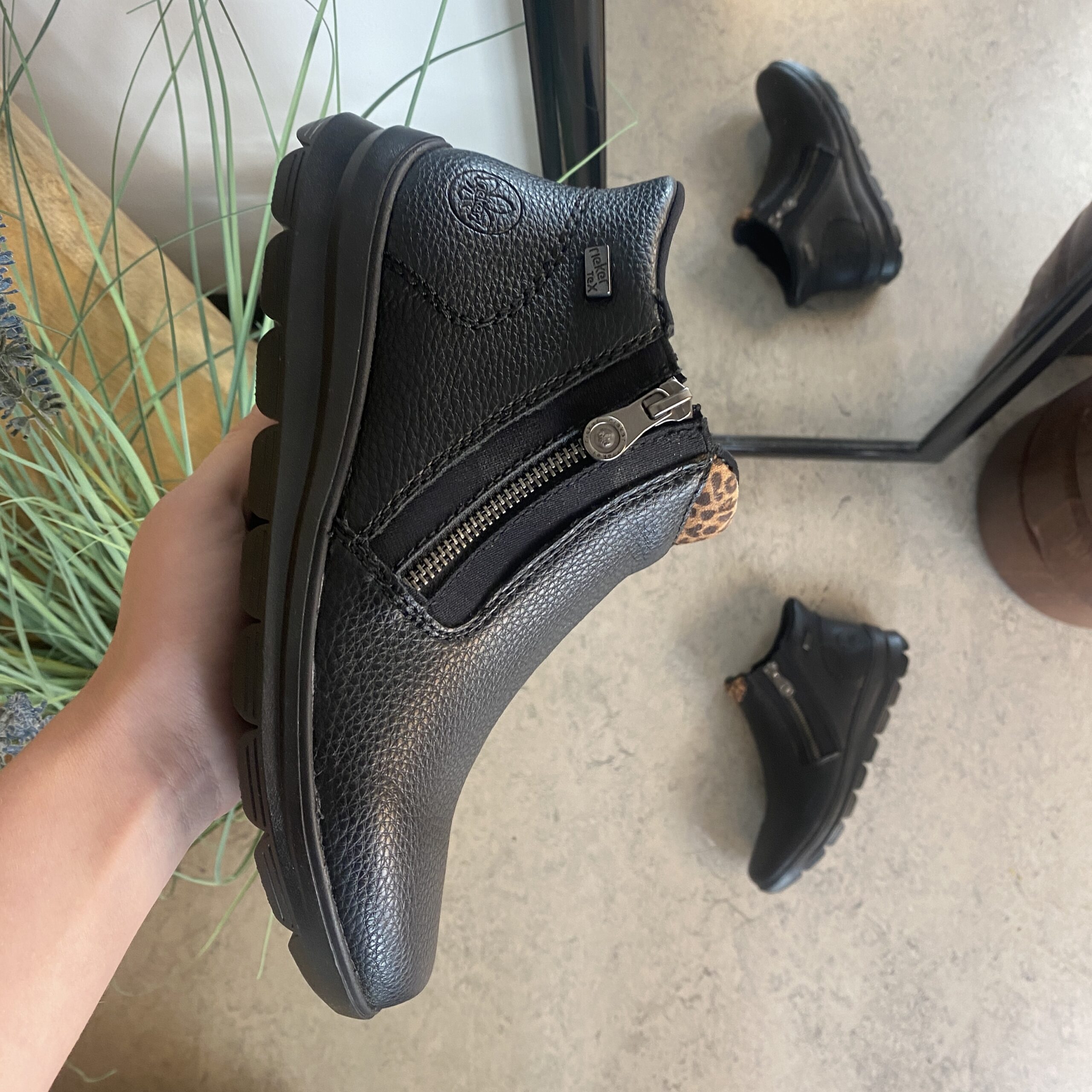 Oplev Rieker Ready 2 Go støvle i klassisk sort, som kombinerer tidløst design med praktiske og komfortable detaljer.
