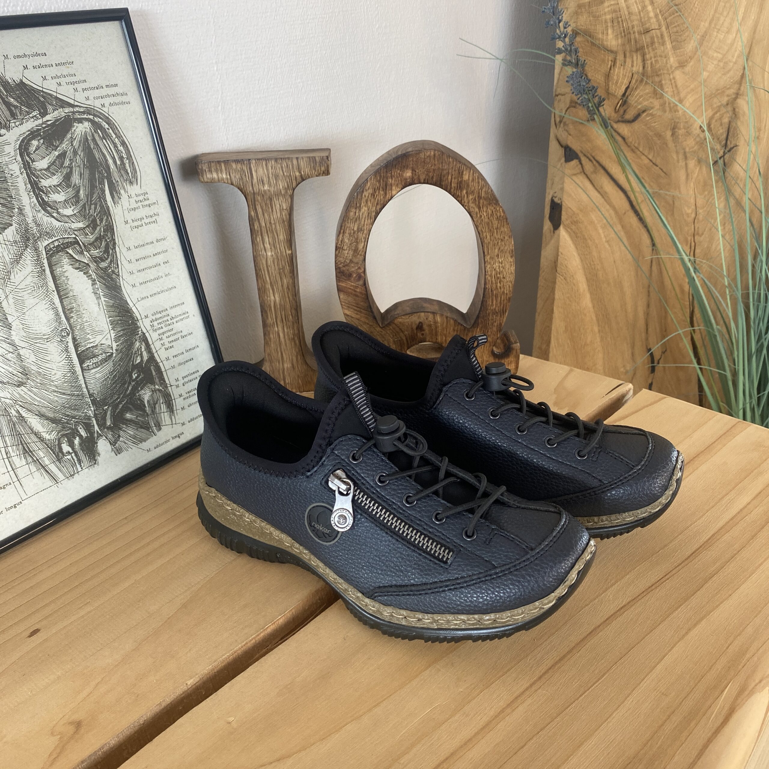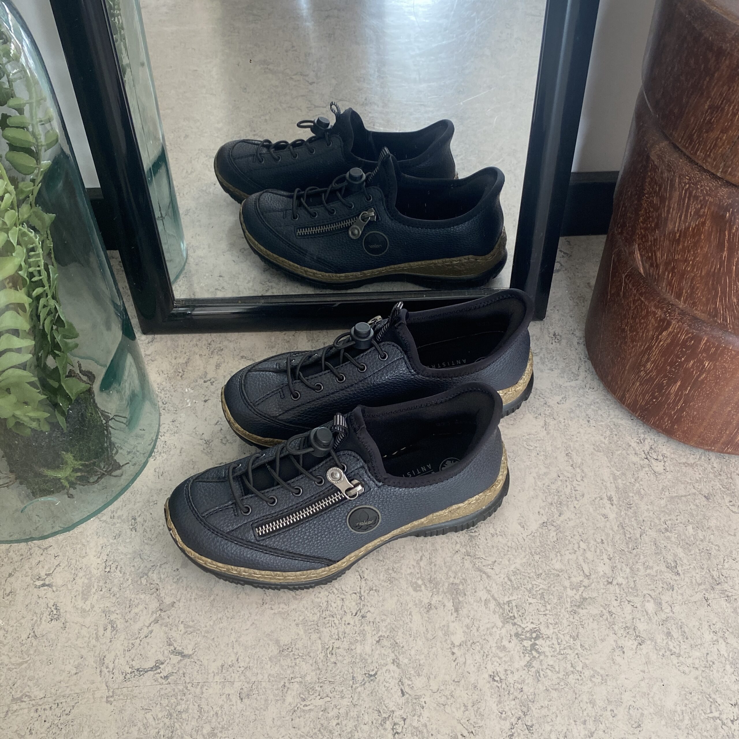 Mørkeblå Rieker slip-on sneakers til damer tilbyder en perfekt kombination af stil og funktionalitet.