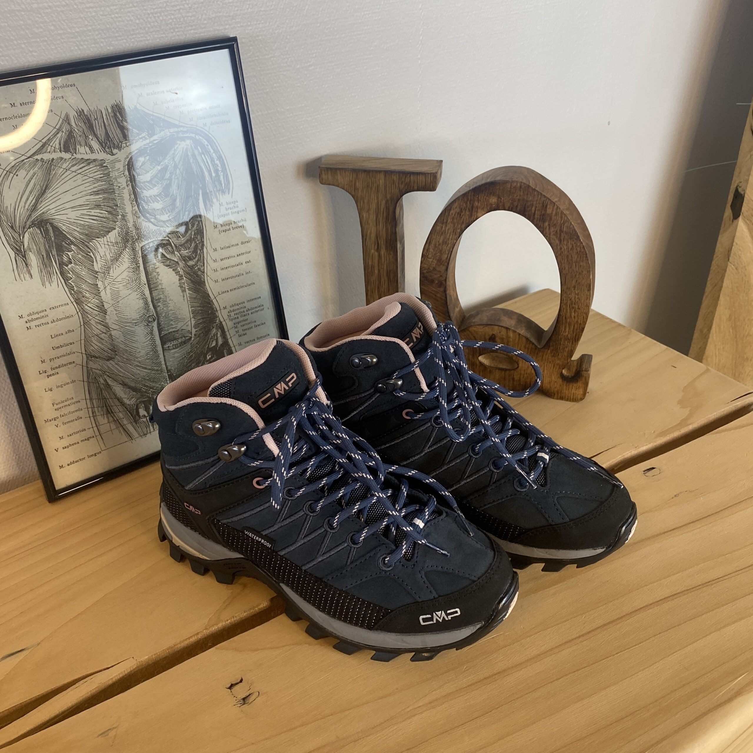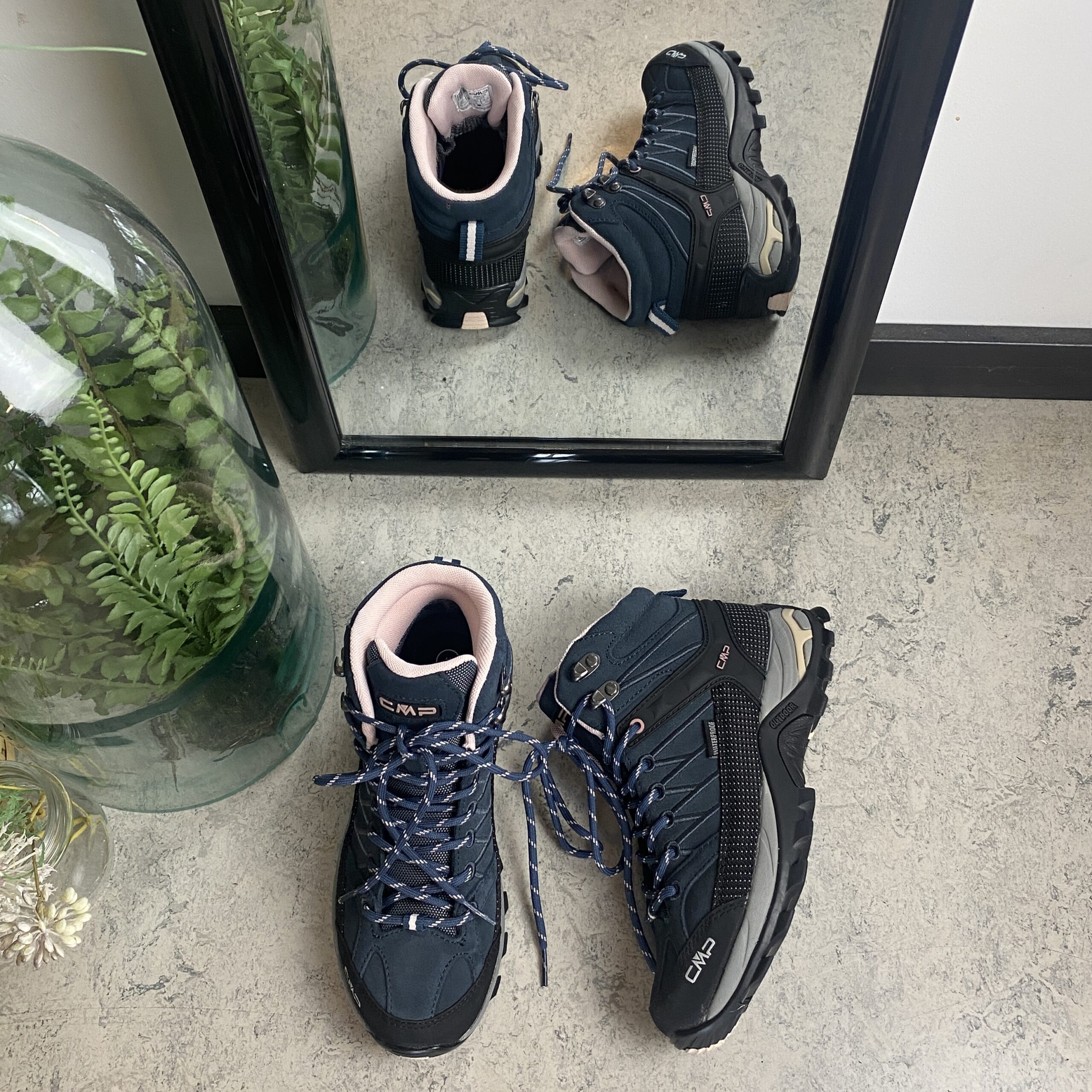 Mørkeblå vandtætte vandrestøvler fra CMP med pink detaljer.