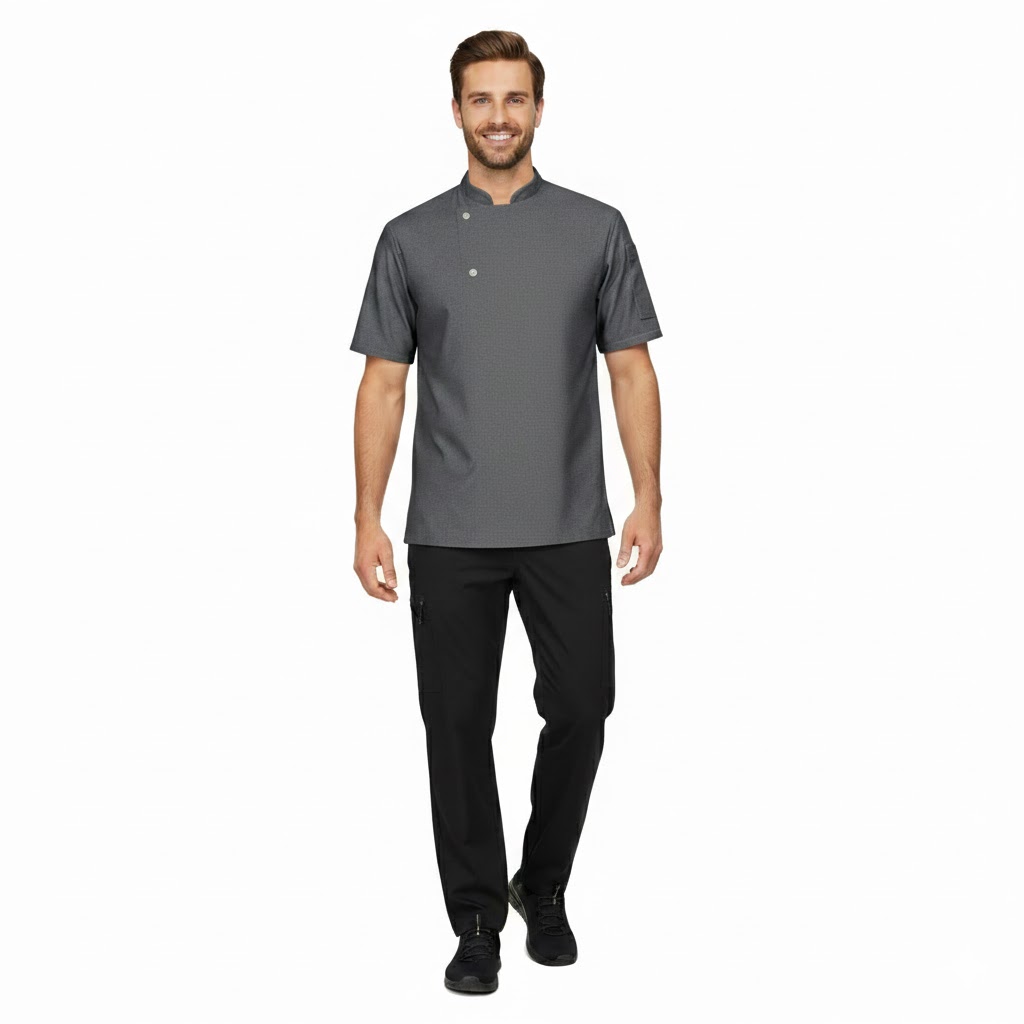 Nybo Grå Unisex Flow Kokkejakke, Kortærmet, Komfort, Body Fit, Stretch