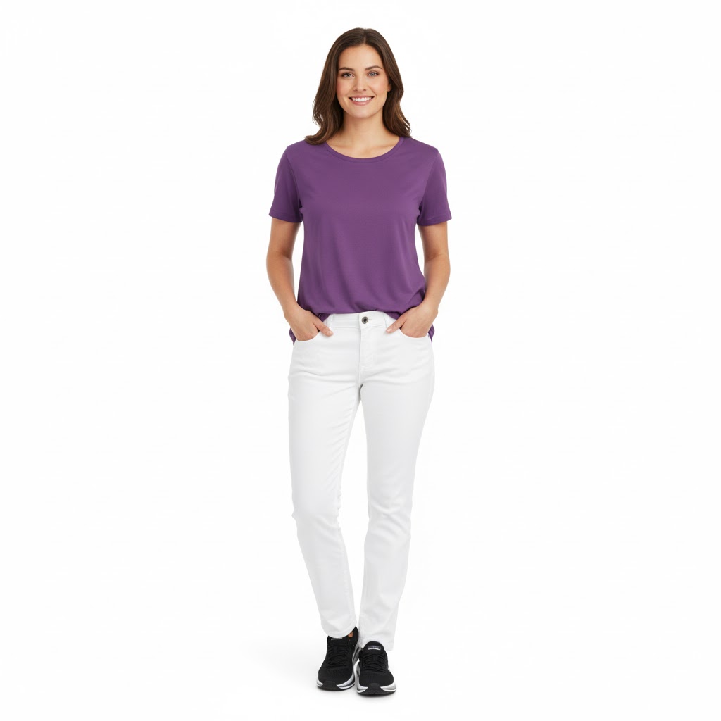 Nybo Workwear A/S præsenterer de hvide damejeans, Harmony, som bringer både stil og komfort til arbejdslivet. Disse fleksible stretch jeans er designet med en moderat til lav taljehøjde, perfekt til dem, som foretrækker et sporty og feminint look. Med klassiske for- og baglommer, justerbar elastik i linningen bagtil, og en smal benåbning, formår disse bukser at balancere funktionalitet og moderne design. Elastikken tillader individuel pasform, hvilket sikrer optimal komfort i forskellige arbejdsstillinger uden at bukserne glider ned. De horisontale bæltestropper er ideelle til nøgler eller adgangskort, og de dybe lommer fremmer anvendelighed og stil.
