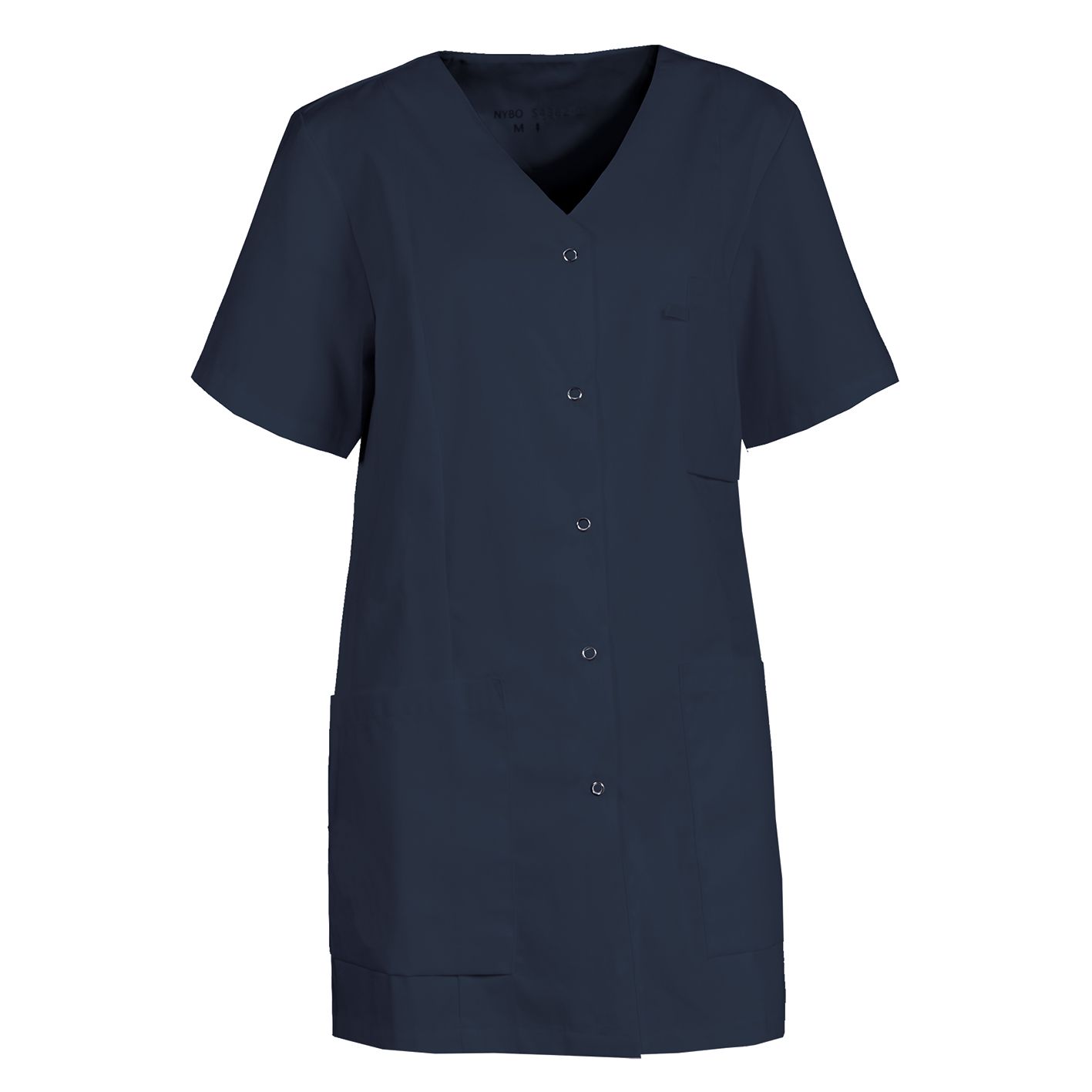 Nybo navy dametunika sikrer, at du kan klare arbejdsdagen med både stil og komfort. Tunikaen er let taljeret og har en klassisk pasform med god længde, som giver ideel dækning bagtil i enhver arbejdssituation. Kortærmede ærmer, der dækker overarmene, giver et moderne og praktisk look. V-halsen har en moderat dybde, som slankende fremhæver hals og ansigt. Praktisk udstyret med en brystlomme med udvendig strop og to rummelige hoftelommer med nøglestropper, giver tunikaen god opbevaringsplads. Den højre hoftelomme inkluderer desuden en ekstra indvendig lomme til en telefon.