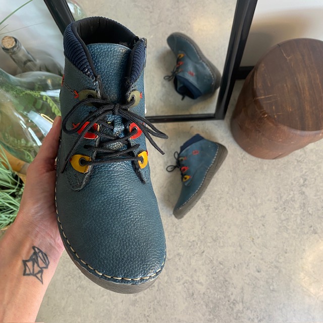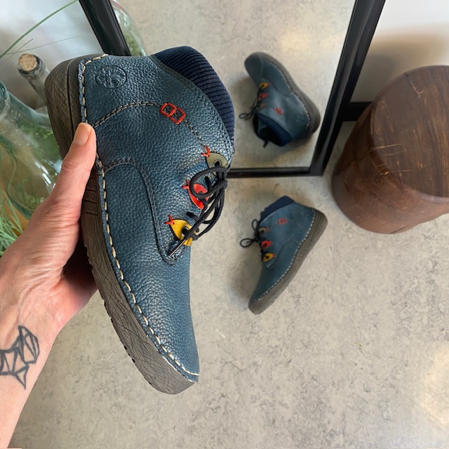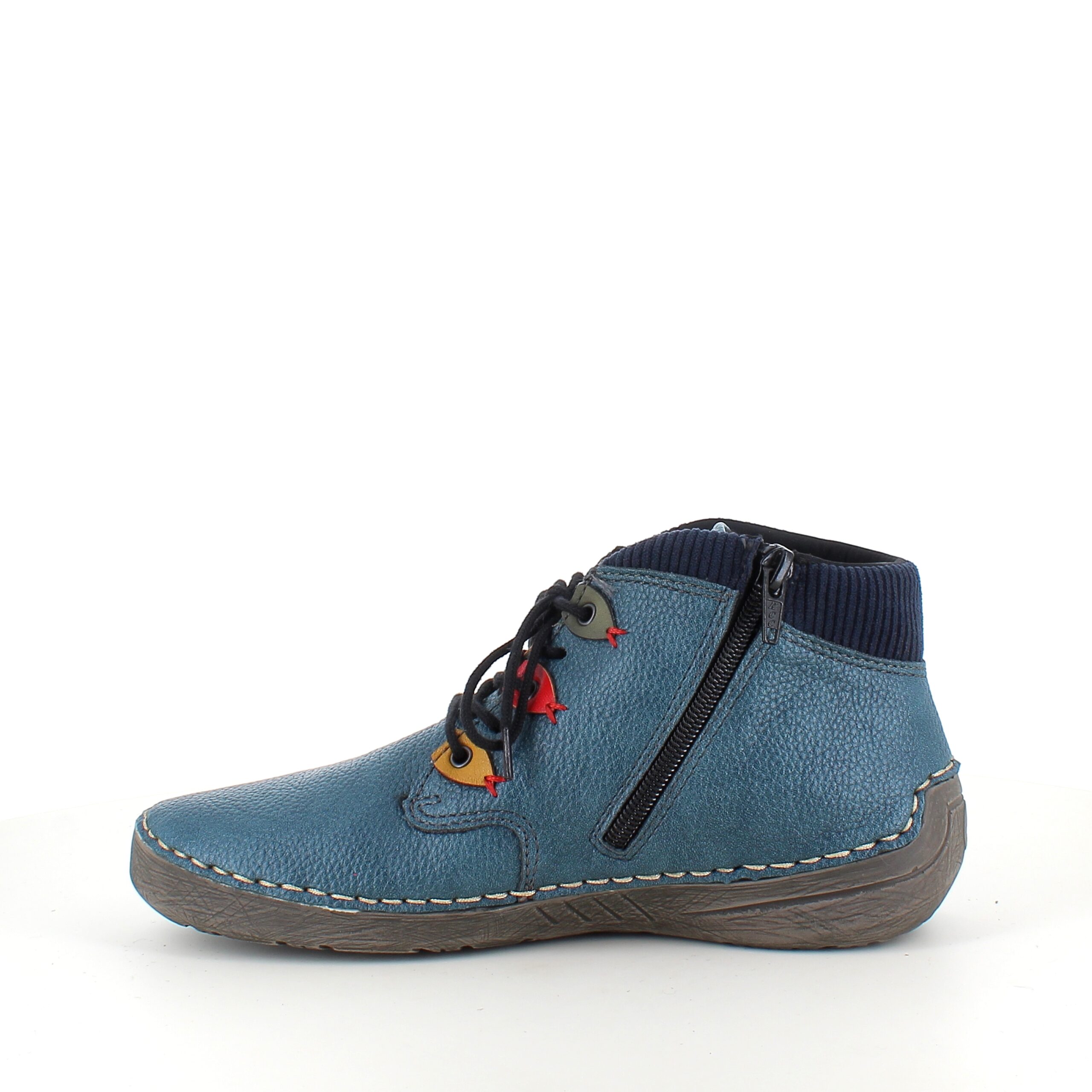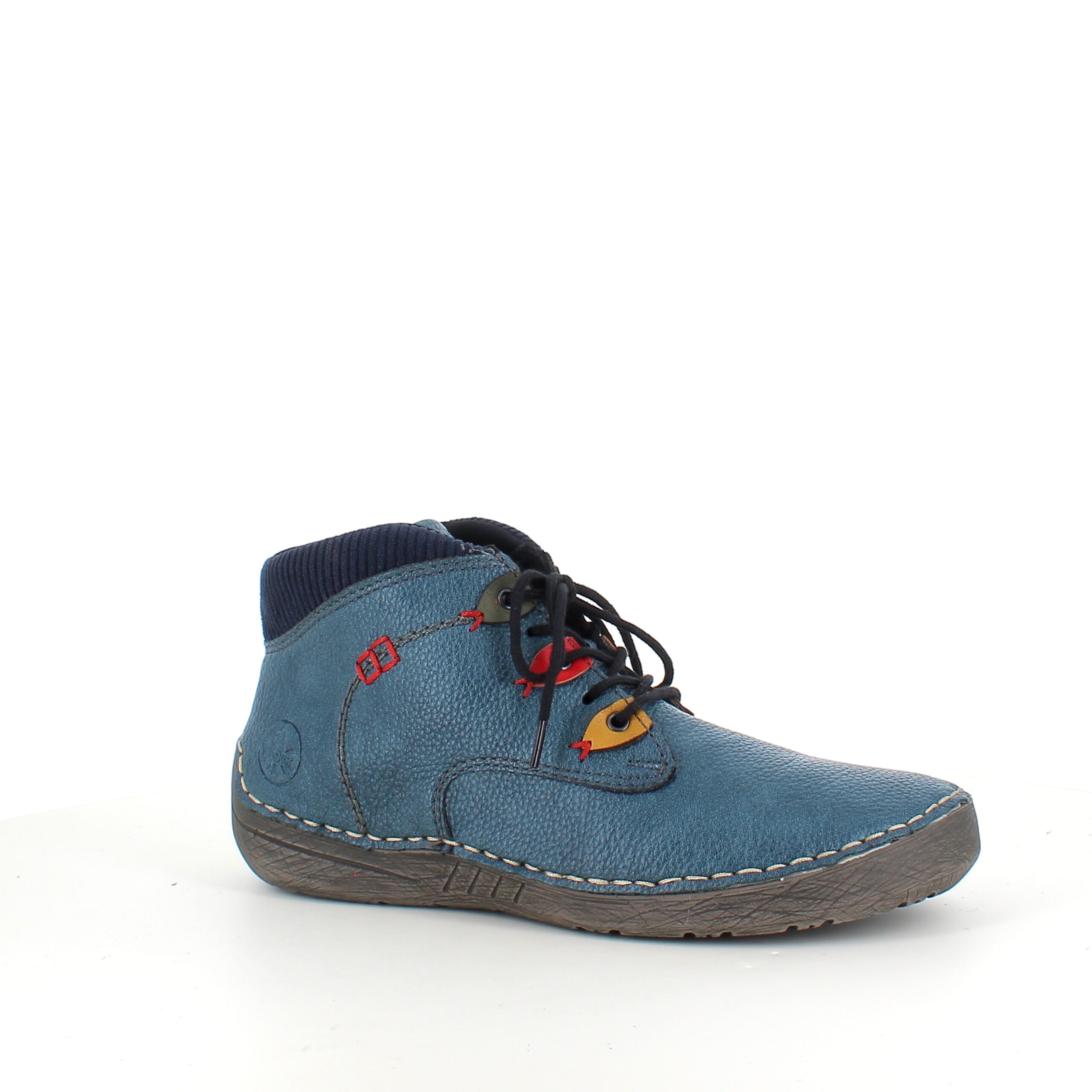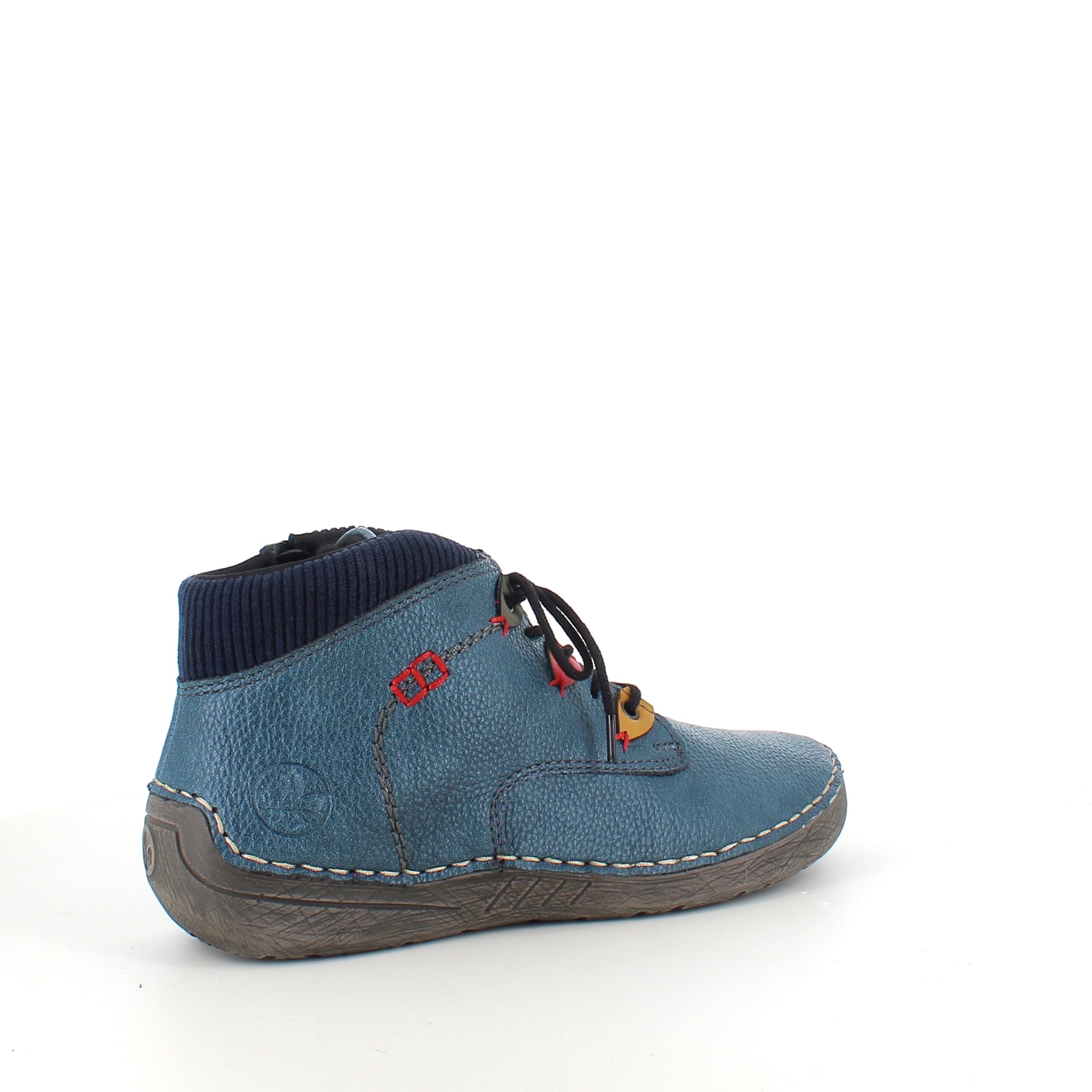 Den korte blå støvle fra Rieker kombinerer komfort, fleksibilitet og et friskt strejf af farve.