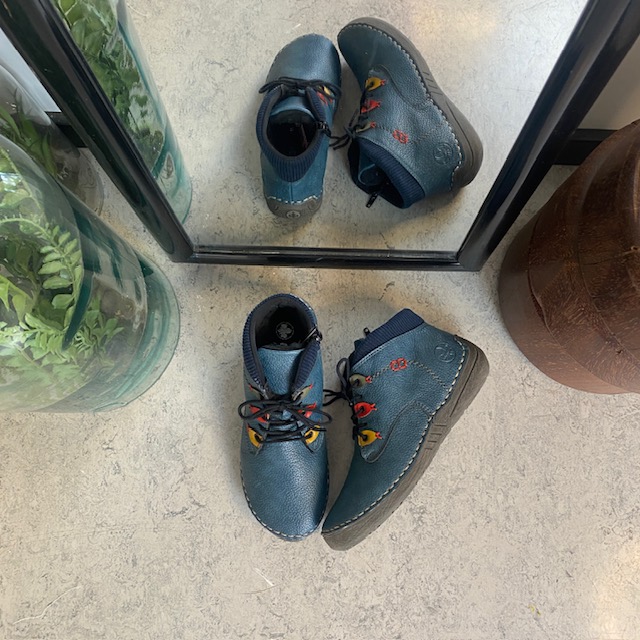 Støvlen er fremstillet i imiteret blåt skind, der giver et flot og levende udtryk, samtidig med at materialet føles blødt og behageligt mod foden.