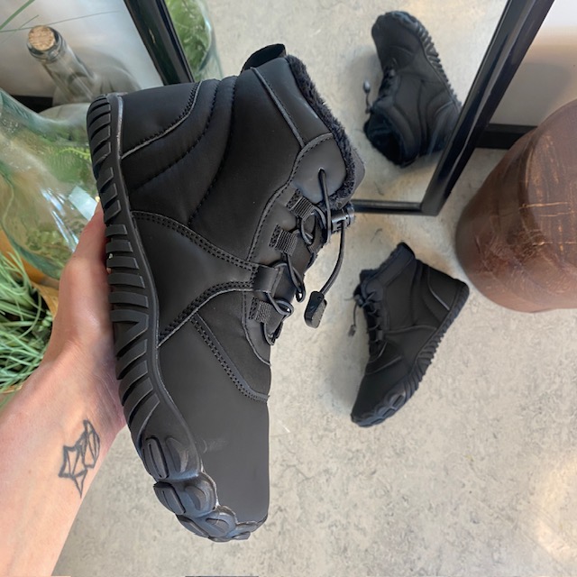 Sort herre barfodssko med fleksibel gummisål, praktisk klemmelukning og let for