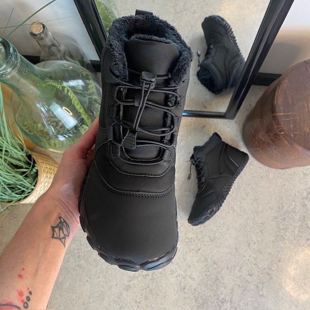 Let og fleksibel herre barfodssko i sort med minimalistisk design og høj komfort.