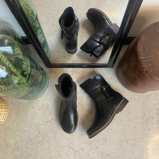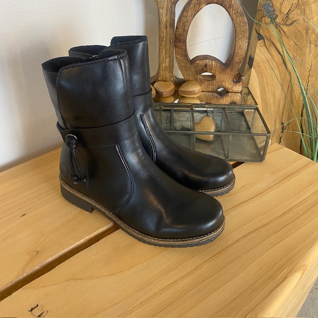 Denne smarte Rieker vinterstøvle i sort er både praktisk og flot.